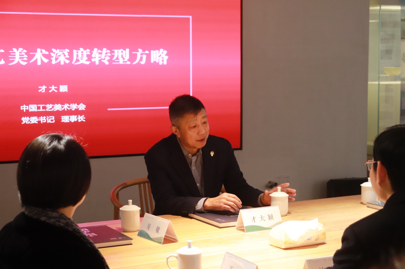 才大颖围绕工艺美术的传承与创新展开主题讲座,他从背景机遇、行业现状、时代使命、转型方略、学术主张五个纬度阐述了中国工艺美术深度转型的必要性和方略,并指出传统工艺在现代社会中的多元发展路径。同时,他对如何将传统工艺美术的精髓与现代设计理念、技术手段相融合,共同直面工艺美术行业在未来发展中可能遭遇的重重挑战指明了方向。