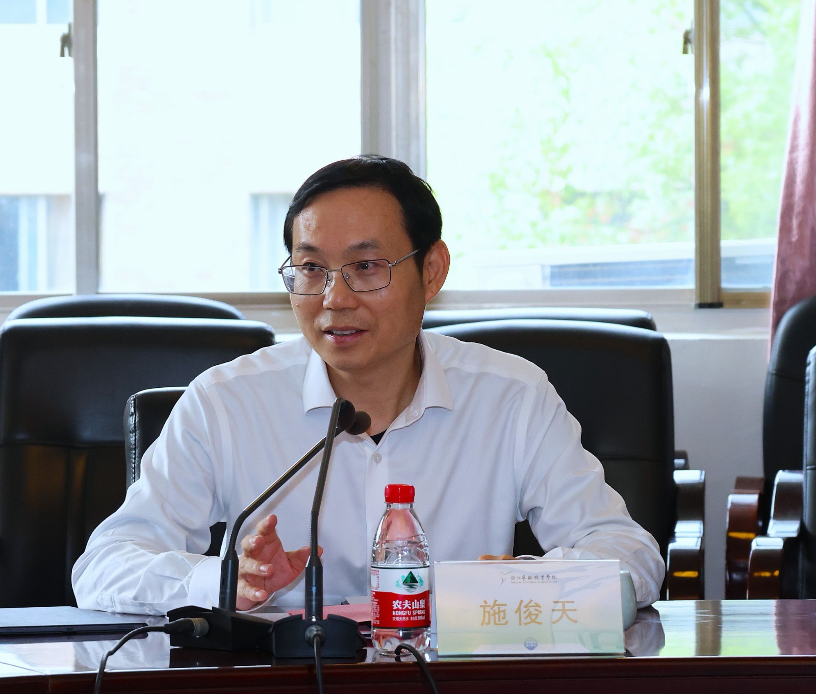 会上,双方围绕双高建设、人才培养方案、课程设置、实训室建设、毕业生就业创业、校企产教融合等开展交流。施俊天介绍了学校在人才培养方面有戏曲订单班、乡镇文化员定向培养等特色做法。他表示,今年学校重点推进产教融合的体制运行,加强培育人才培养成果,希望湖南艺术职业学院与我校共同探讨新时代艺术职业教育创新发展路径,共谋学校发展。