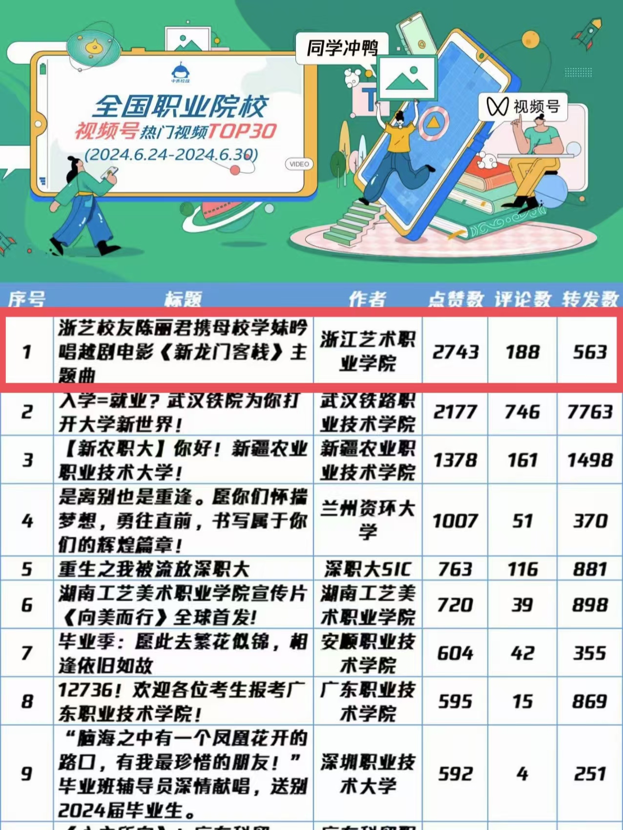 2024年全国职业院校视频号热门视频TOP1