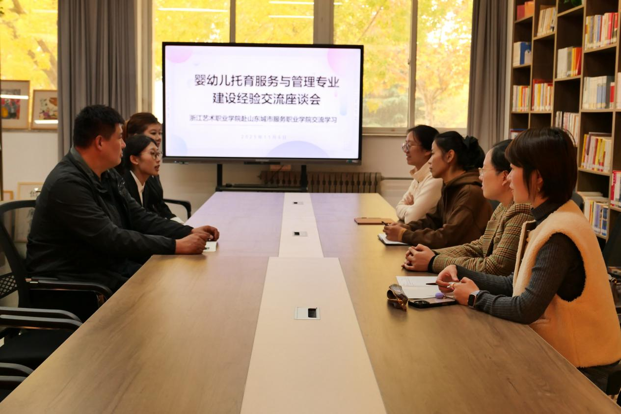 为进一步拓展学前教育专业建设方向,近日,演艺与教育学院学前教育专业教研室主任卢茜、专业教师宋莉、田苗、王纨荻前往山东城市服务职业学院参观交流。此次活动得到了山东城市服务职业学院旅游与服务学院院长张怡、副院长卢昕昕及婴幼儿托育服务与管理专业教研室全体教师热情接待,并在富有特色的“红馆”会议室举行了座谈。