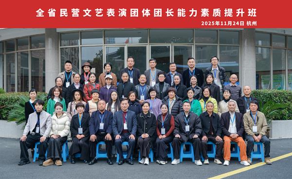 近日,由浙江省文化广电和旅游厅主办,浙江艺术职业学院承办的2025年全省民营文艺表演团体团长能力素质提升培训班在我校举办。全省各县(市、区)规模较大、经营发展较好、创作演出能力较强、具有地方代表性、长期扎根基层、服务社会的民营文艺表演团体负责人齐聚一堂,以专题讲座、现场调研、座谈交流、观摩演出等形式开展学习,共同提升综合能力素质。