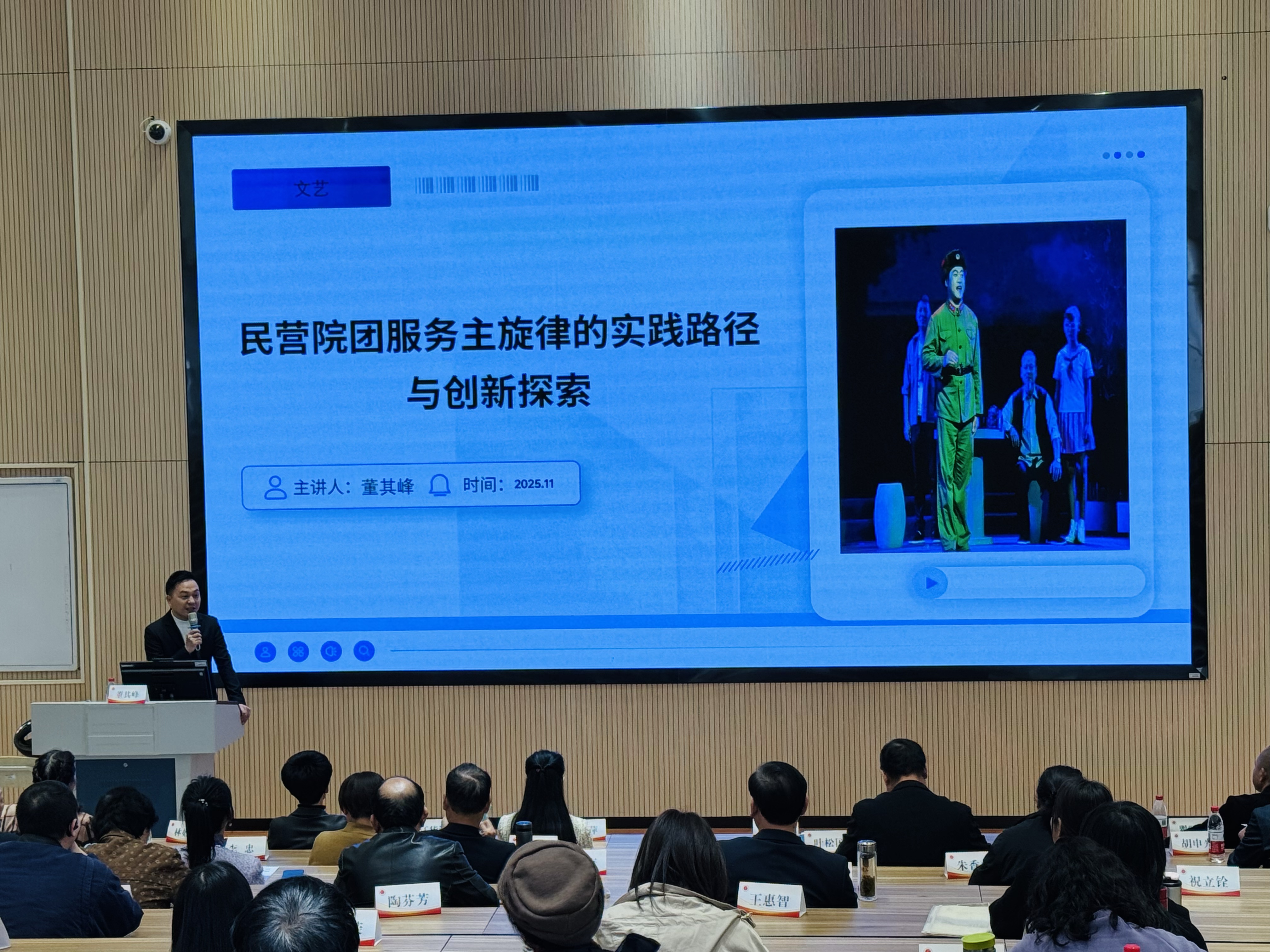 学员们观摩了在蝴蝶剧场上演的“山花烂漫时”2025年浙江省民营文艺表演团体会演戏曲精粹专场,参加了浙江省文艺院团高质量发展座谈会,倾听、交流全省民营文艺院团在建设发展中的困难、成果与建议。