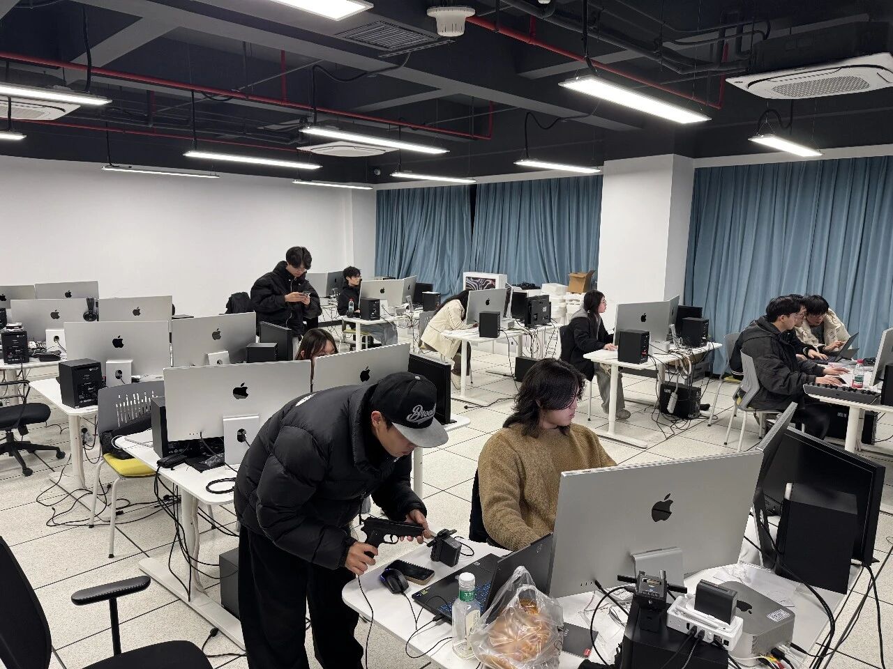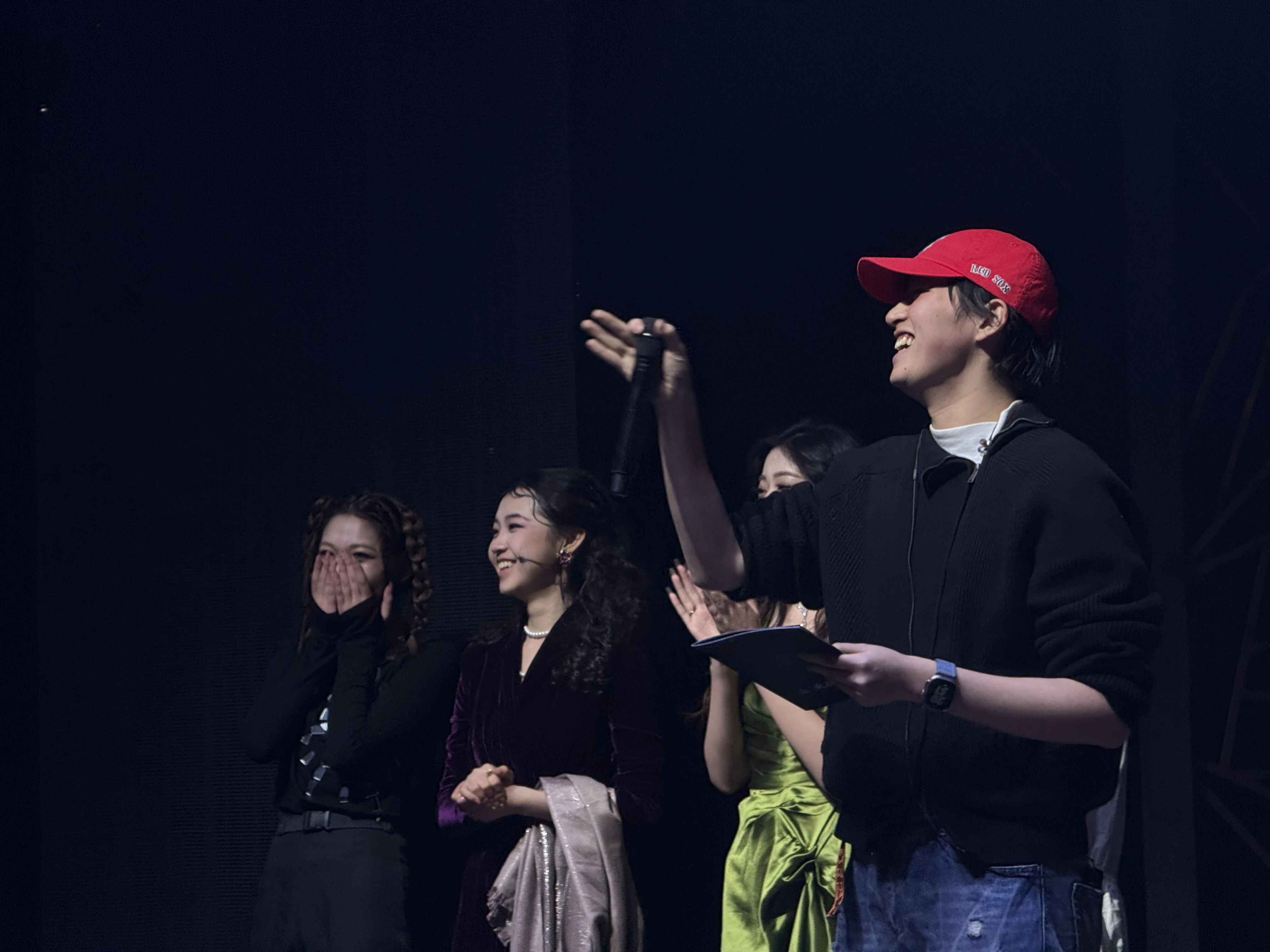 来自影视多媒体专业学生参与了本次多媒体设计与制作,刘子怡同学从技术创作的视角分享了她的体会:“参与《杀手的礼物》多媒体创作,是一次跨界融合的全新尝试。我们以多媒体特效、交互、AIGC等技术,将暗网直播的荒诞、电车难题的挣扎具象化,与戏剧表演无缝衔接。技术赋能艺术,让悬疑与温情交织的故事更具沉浸感,也让我对舞台的无限可能有了新认知。”