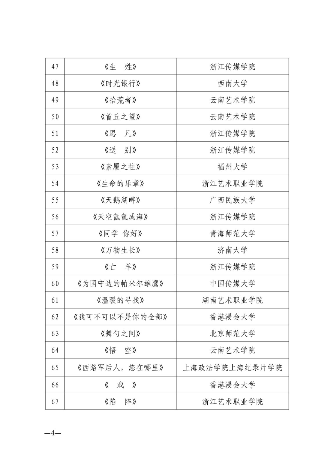 关于第四届浙艺金鹄电影节暨原创影像大赛入围名单的公告