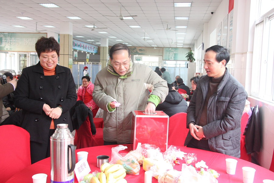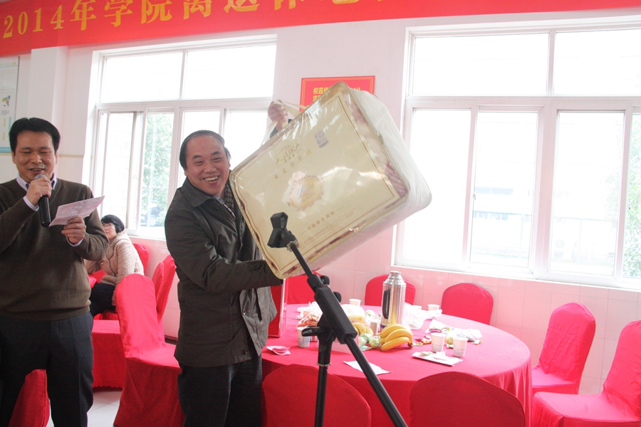 团拜会上还举行抽奖活动,为获奖者颁发奖品。学院财务处、医务室等部门工作人员还实行现场“一条龙”服务,为老同志们报销医药费。