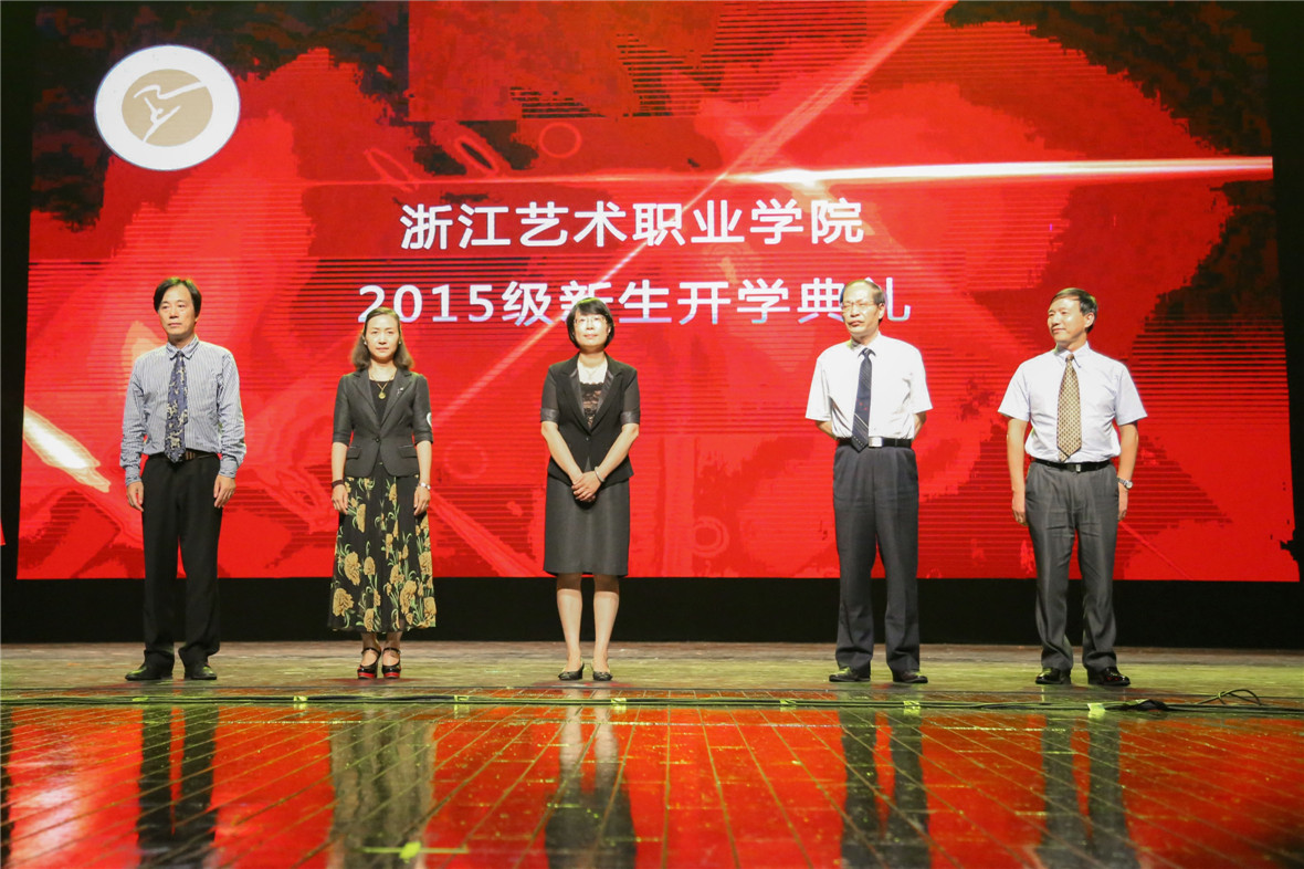 9月14日晚,浙江艺术职业学院2015级新生开学典礼在实验剧场隆重举行。院党委书记、副院长朱海闵,党委副书记黄杭娟,党委委员、副院长章轲,党委委员、副院长沈恒,党委委员、纪委书记夏开堂,各职能部门和各教学系部负责人出席仪式。1314名新生参加典礼。