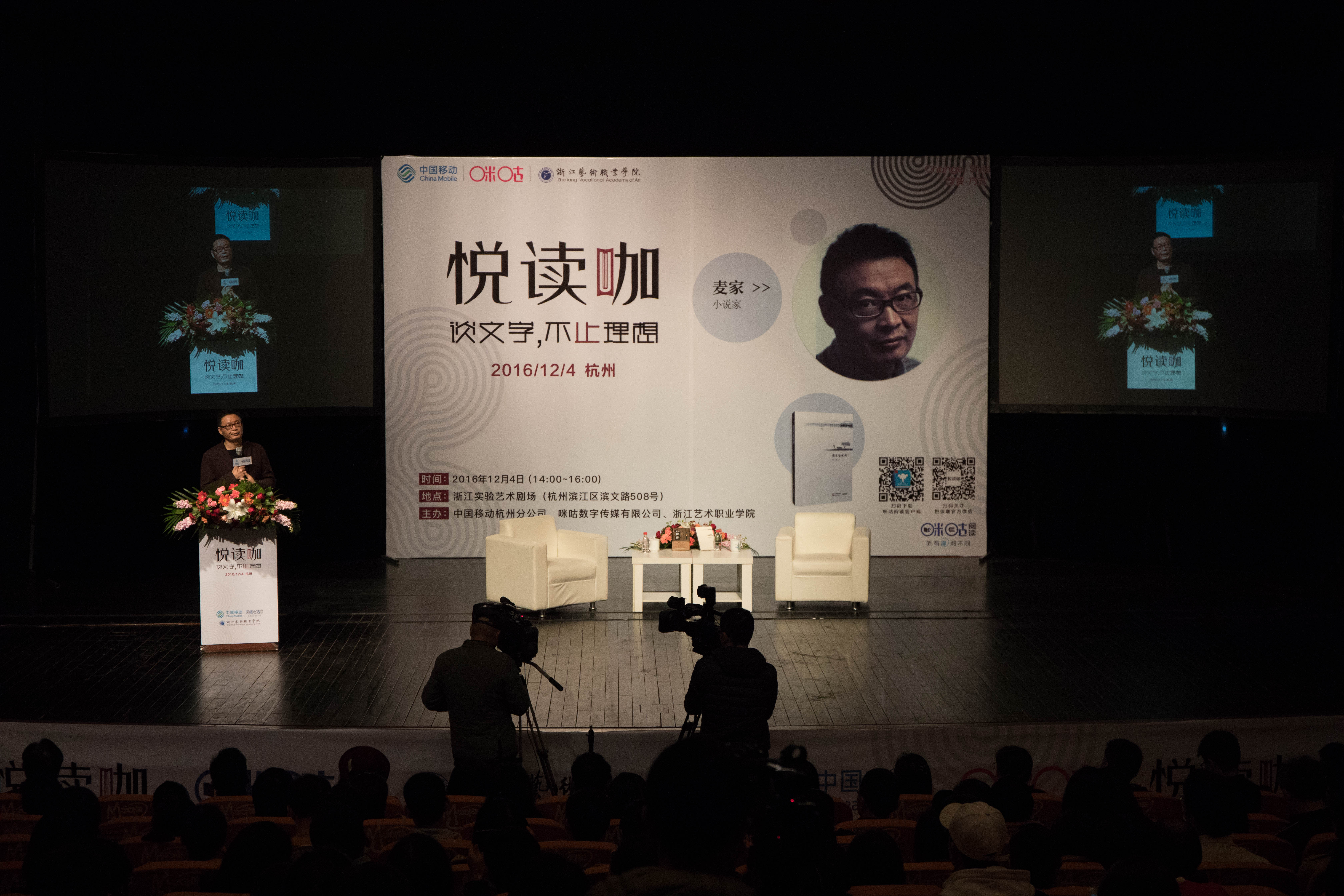 12月4日下午,由浙江艺术职业学院、中国移动杭州分公司主办的《谈文学,不止理想》麦家讲座在浙江实验剧场举办。麦家是中国当代著名小说家、编剧,主要作品有小说《解密》《暗算》《风声》,影视作品《暗算》《风声》《听风者》等。其中小说《暗算》获第七届茅盾文学奖。