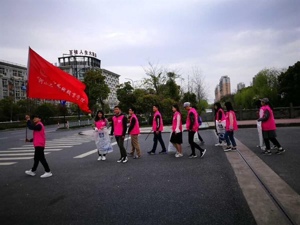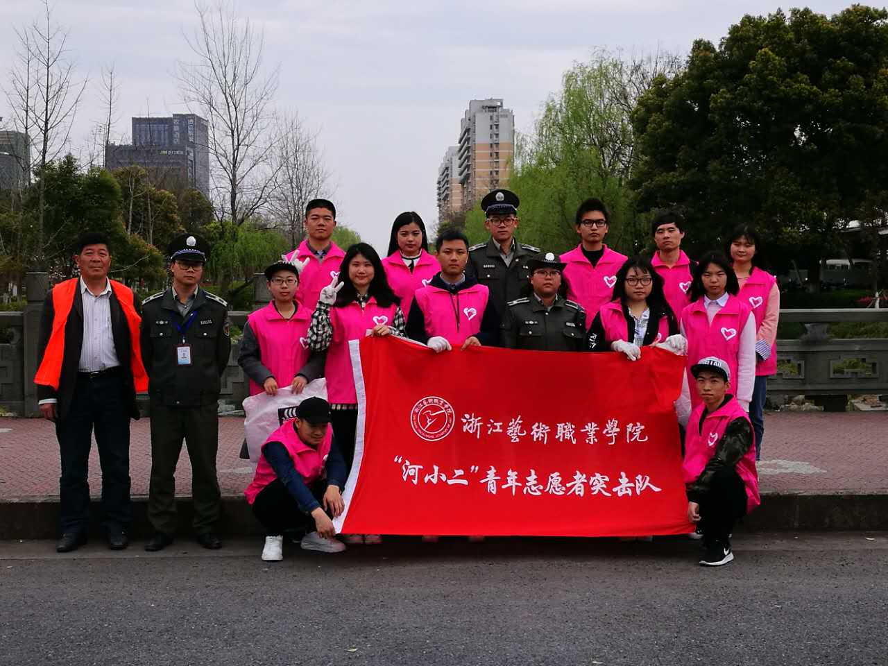 我以学子之名,自觉响应剿灭劣V类水集结号令,积极投身五水共治,清三河、护三水,以青春意志,激浊扬清剿灭劣V类水,以学子之风,奋楫扬帆共建美丽浙江。”3月28日,浙江艺术职业学院“河小二来了”——剿灭劣V类水专项实践活动第一站正式启动。在此活动中,浙艺“河小二”青年突击队成功与滨江区城管局结对,在高教河“河长”的指导下做了一次河长助理,体验了一次巡河,宣传了一次河道环保知识。