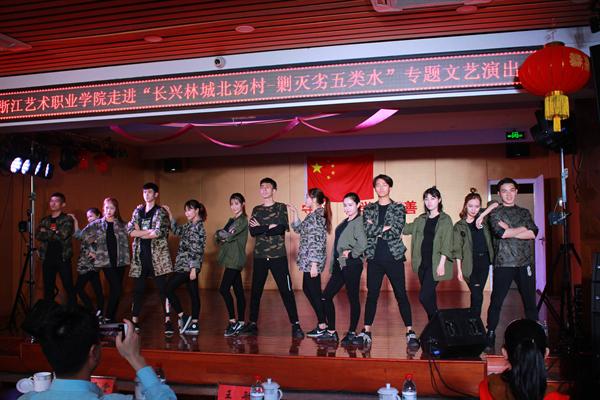 本报讯(记者 吕志辉)为深入贯彻落实省委省政府全面剿灭劣Ⅴ类水的战略部署,充分发挥浙艺师生的专业优势,积极投身治水工作,我院积极参与“千名文艺工作者赴基层”采风巡演活动,5月5日,院长黄杭娟、副院长夏开堂率浙江艺术职业学院分队赴长兴林城镇北汤村采风,为村民作专题文艺巡演。长兴县委常委、宣传部长王庆忠、副部长刘月琴和林城镇及北汤村干部等热情接待我院师生,并与黄杭娟、夏开堂和师生们在治水现场进行交流。