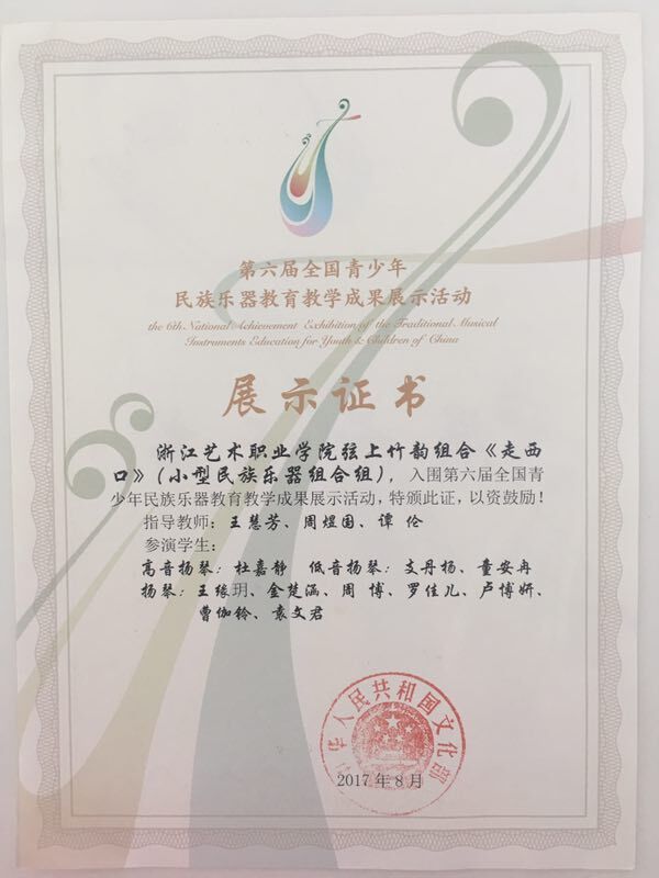 在这场全国高水平教育教学成果展示中,我院扬琴组合弦上竹韵.扬琴重奏《走西口》和柳琴独奏《澳门狂想曲》入选,22日在浙江音乐学院参加第三、四场展演。