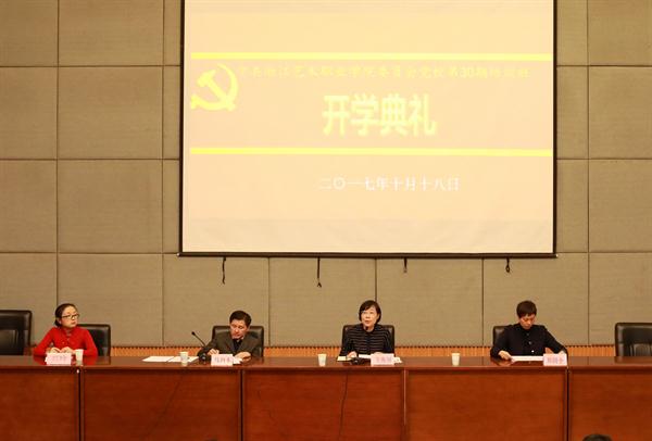 10月18日晚,中共浙江艺术职业学院委员会党校第30期入党积极分子培训班开学典礼在图信中心报告厅举行。校党委书记、党校校长朱海闵、各系党总支(副)书记、党校教师和159名党校学员出席。党委宣传部长、党校校务委员兼党校教研室主任马向东主持大会。
