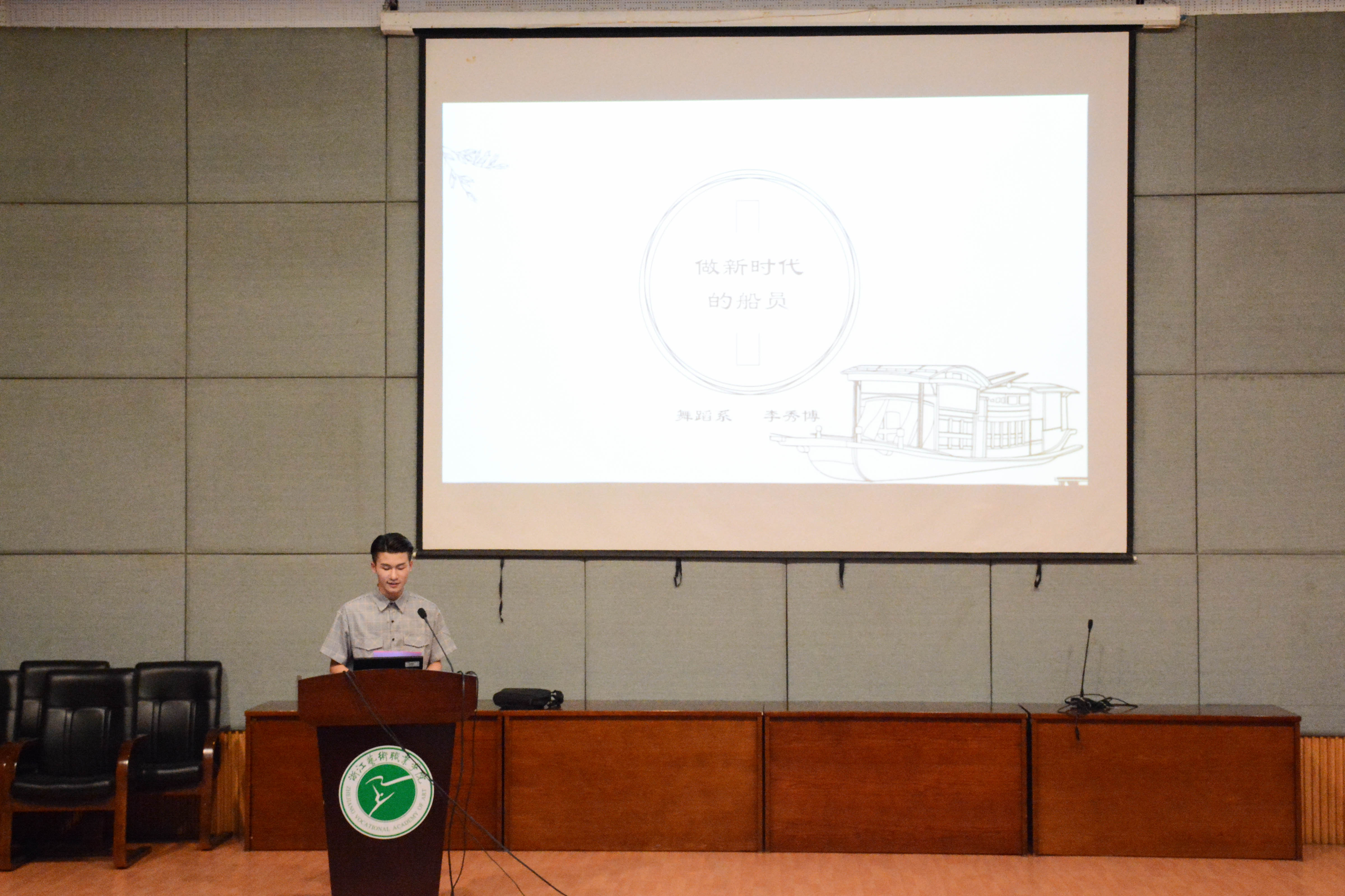 比赛现场气氛紧张热烈。每位选手的讲课都让师生们展开联想。当提到“新时代,我们的担当”时,台下的学员们会思考,担当是什么,我们能为新时代做什么。每个职业有每个职业的担当,作为大学生,作为浙艺学子,我们在心里默默想着,要担起自己的责任,发挥自己的专业特长,做志存高远的社会主义新青年,为实现中华民族伟大复兴的中国梦而努力。