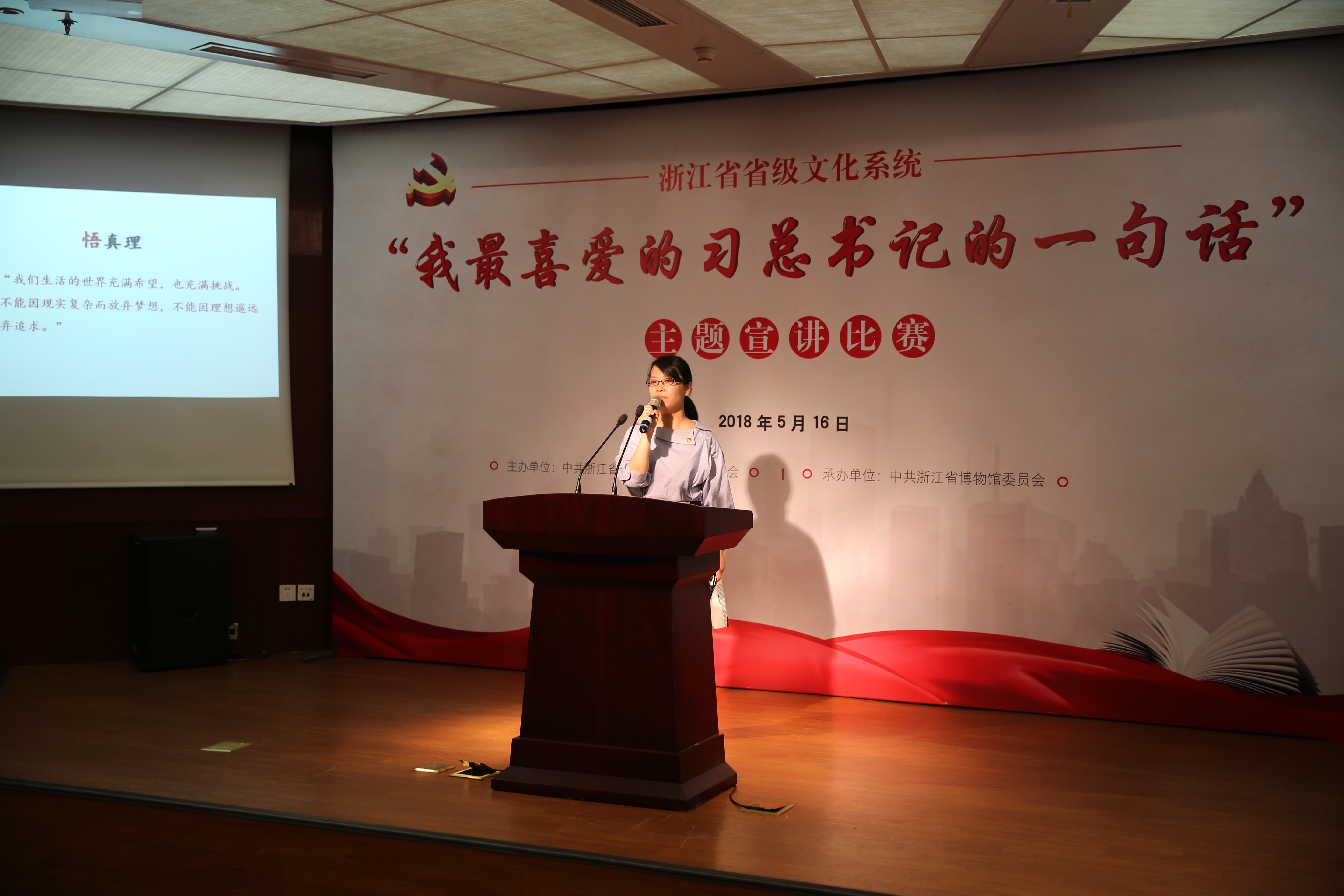 5月16日下午,省级文化系统“我最喜爱的习总书记的一句话”主题宣讲比赛在浙江省博物馆举行。浙江艺术职业学院美术系教工第一党支部书记巴蕾、戏剧系教师党员柴轶佳在比赛中发挥出色,双双荣获二等奖。