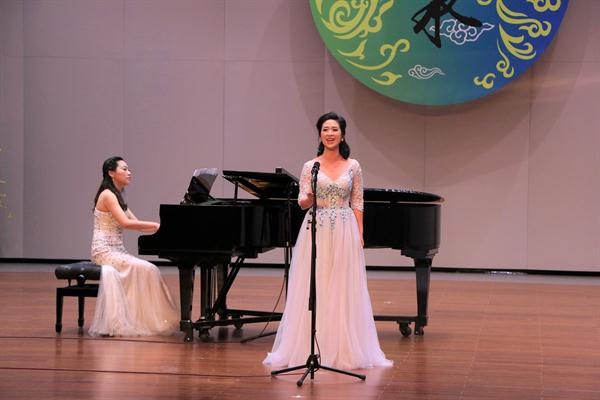 胡素银和现场声乐学生合唱的《我的祖国》为音乐会开场。越剧《梁山伯与祝英台》选段《十八相送》,由87级越剧班陈爱菊、周艳演绎,就像婉约清丽的江南之水,曲调柔美深情,是胡素银从教的第一份纪念。浙艺原创音乐剧《五姑娘》选段《爱到永远》,由96级音舞班钱思舒和音乐系党总支专职副书记谢志勇演绎,“想过多少年,盼过多少年”熟悉的唱段令人陶醉;乐清民歌《对鸟》曲调欢快爽朗,节奏自由舒展,由00级音乐表演班冯斯凡演绎;苏东坡的《饮湖上初晴后雨》由93级群文班畲族学生雷莹完成,经典诗词吟唱起来别有一番韵味;纯朴生动的陕北民歌《兰花花》,委婉凄怆的河北民歌《小白菜》,以及《哈达似的白云》分别由04级声乐五年一贯班胡韵、浙江音乐学院贾舒韵和92级社音班袁春演唱,不同风格的民歌展现了不一样的情感。96级音乐班刘伟带来的内蒙民歌《莫尼山》引发了现场小高潮,歌声正如歌词所唱“高入云端”,诉说着大自然的诗篇。