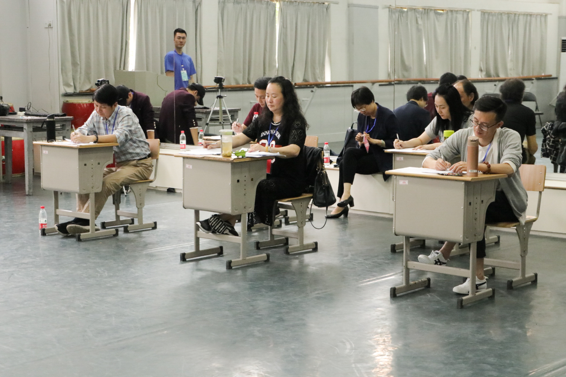 现场300多位同龄人竞争61个名额,6:1的招录比无疑给很多学生增加了一定压力。一个考生说:“挺有压力的,我本身不是学艺术出身,没有可以炫耀的一技之长,太担心了。这里的人好像都很厉害的样子。但我也会努力的,因为我还蛮喜欢这个专业的。”旁边一位小姑娘估计就是她眼中“很厉害”的人,因为她已经通过了某音乐学院的校考。“那你为什么还来报文化员考试?”她说,“毕业就有编制还是挺吸引人的,我想留在老家工作。其实我也挺紧张的,专业没问题,最后还是要看高考成绩,我估计高考成绩考不过他们……”有些紧张的考生没吃早饭,学校贴心地准备了小点心等,并在候考区准备了大量饮用水和一次性纸杯,供考生自取。