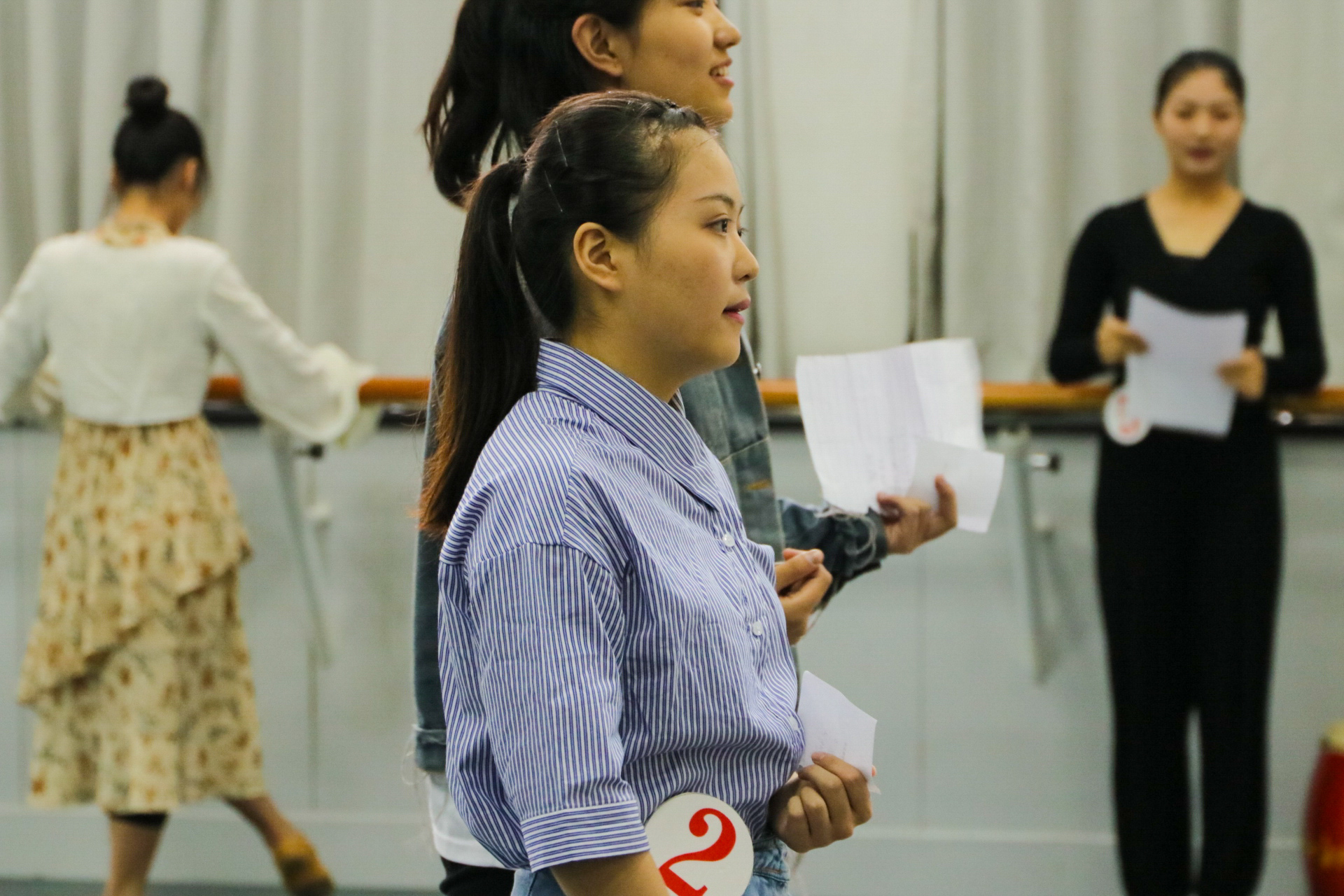 在考场,考生按地区分小组进入,每人接受声乐、形体、语言、表演、才艺展示等考试,以及小组合作小品表演等。专业测试总成绩为100分,达到60分以上,均确定为合格。丽水云和一所高中来了10位同学,但云和只有1个招生名额,同学们结伴来到杭州考试,没有家长陪同,也没有老师带队,彼此鼓励加油,谁发挥得好大家都很高兴。有同学谈到:“我是来自农村的,如果能把表演、歌舞等学好了,再回去教乡里村里人,让他们也能和电视上一样跳得美美的,我觉得这样很有意义。”