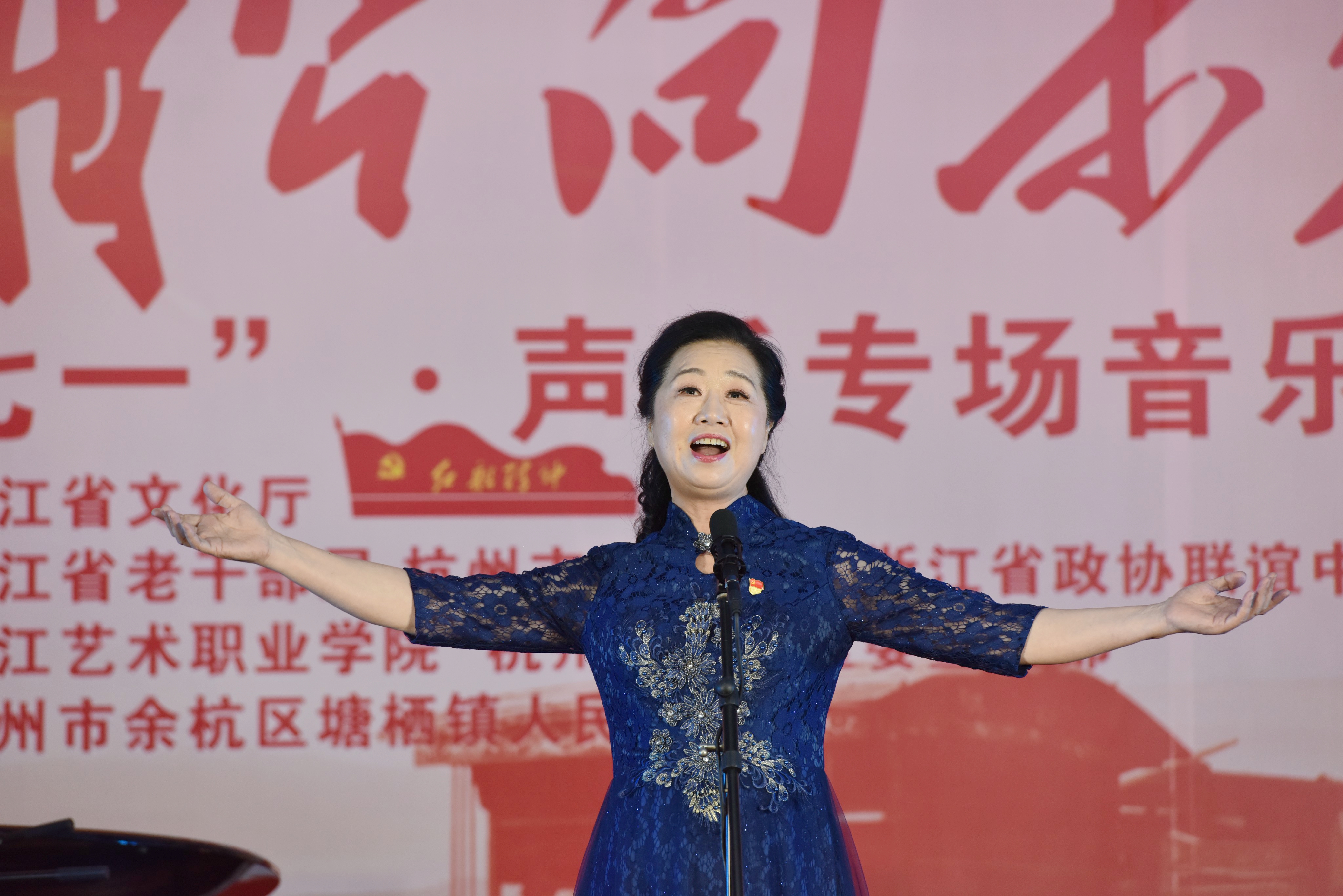 6月23日,为迎接建党97周年,由浙江省文化厅主办,省委老干部局、杭州市委宣传部、省政协联谊中心支持,浙江艺术职业学院、杭州市余杭区委宣传部、塘栖镇人民政府承办的“红船向未来——迎七一声乐专场音乐会”主题党日活动在余杭区塘栖镇塘栖村文化礼堂举行。省人大常委会党组书记、副主任梁黎明,杭州市人大常委会主任于跃敏,省委宣传部常务副部长来颖杰,省委组织部副部长、省委老干部局局长鲍秀英,省文化厅党组书记、厅长褚子育,浙江艺术职业学院党委书记朱海闵、副院长沈恒、音乐系系主任郭义江等出席。来自省直系统有关单位的党员干部、杭州市及余杭区有关领导在现场与村民们一起聆听了这场音乐会。