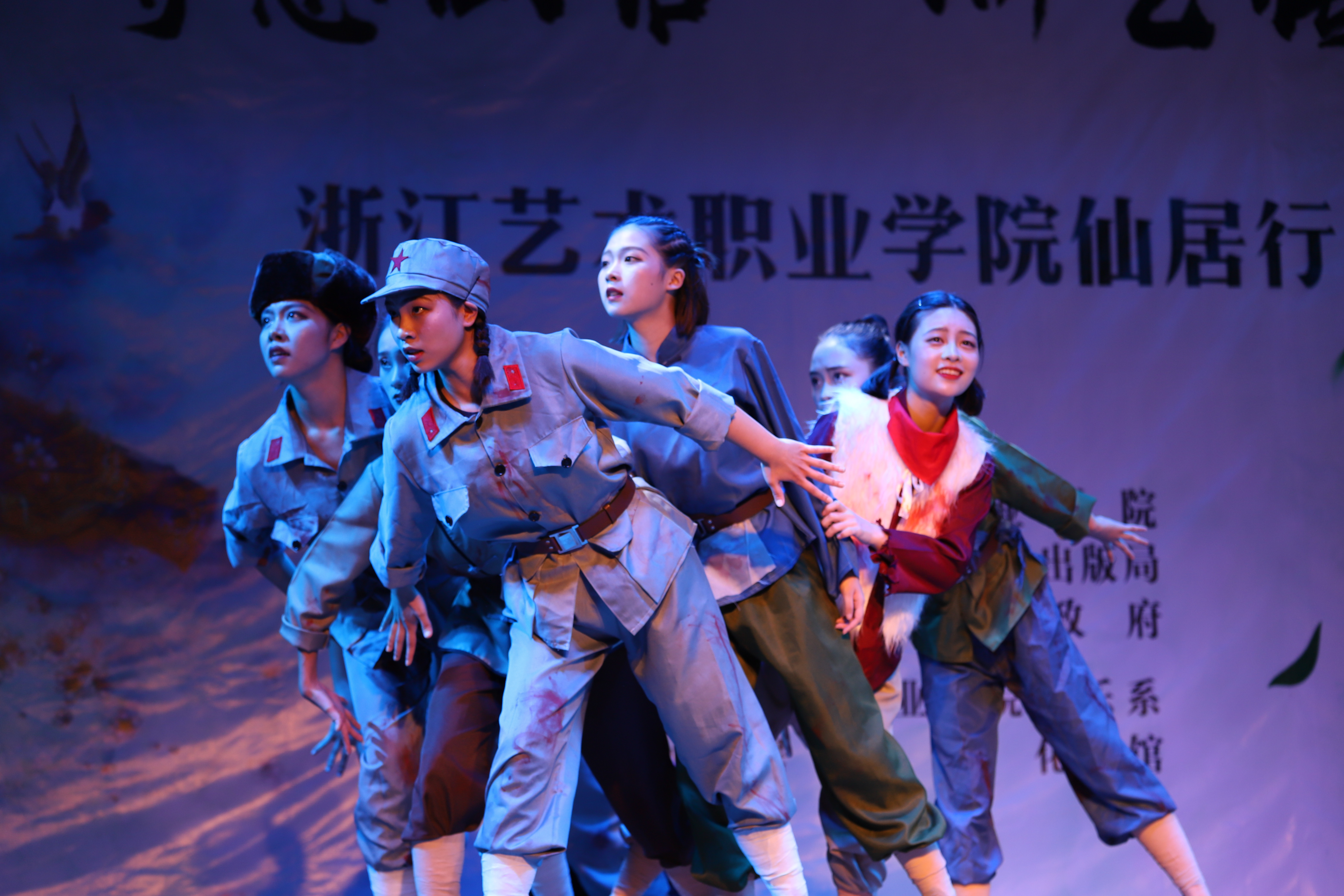 授牌仪式后,浙艺师生为当地群众作了精彩演出。由古筝、扬琴、中软、琵琶等民族传统乐器组成的弹拨乐重奏《鲁腔》拉开了晚会的序幕,笛子独奏《牧民新歌》富含田园气息,阿卡贝拉《小九妹》表演形式令村民们耳目一新,群舞《八女投江》演绎了革命烈士的英勇无畏,萨克斯独奏《此情不移》旋律悠扬,女声独唱《芦花》声声动人,《流行舞串烧》和群舞《不想说再见》青春洋溢,古筝独奏《西部主题畅想曲》仿佛将观众带回了古时的西域,演出在女声独唱《中国进入新时代》中落下了帷幕。整台节目丰富多彩,村民们赞叹不已,更有村民说:“浙艺真是全省文艺人才的‘黄埔军校’啊”!当晚演出进行了现场直播,点击量达12.3万人次。次日晚,浙艺师生在仙居县淡竹乡下叶村再次进行专场演出。
