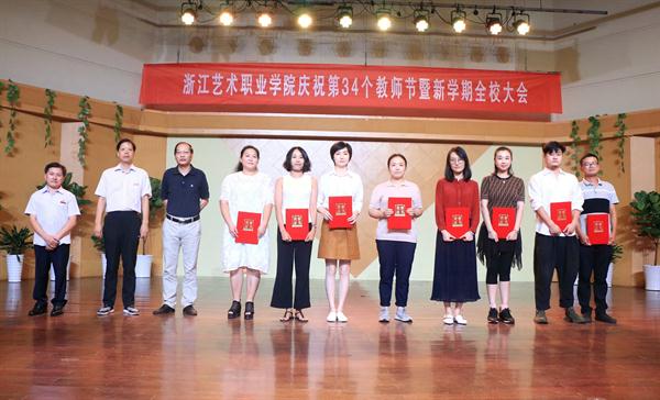 9月19日下午,浙江艺术职业学院庆祝第34个教师节大会暨新学期全校大会在音乐厅举行。校领导朱海闵、黄杭娟、夏开堂、章轲、沈恒、徐芳、沈军甫、王涛、马向东出席,全院教职工参加大会。党委副书记夏开堂主持大会,他代表校党委领导班子向过去一年来在各个岗位上辛勤工作、默默付出,为学校发展和学生成长成才做出不懈努力的全体教职工送上亲切的问候和诚挚的感谢。