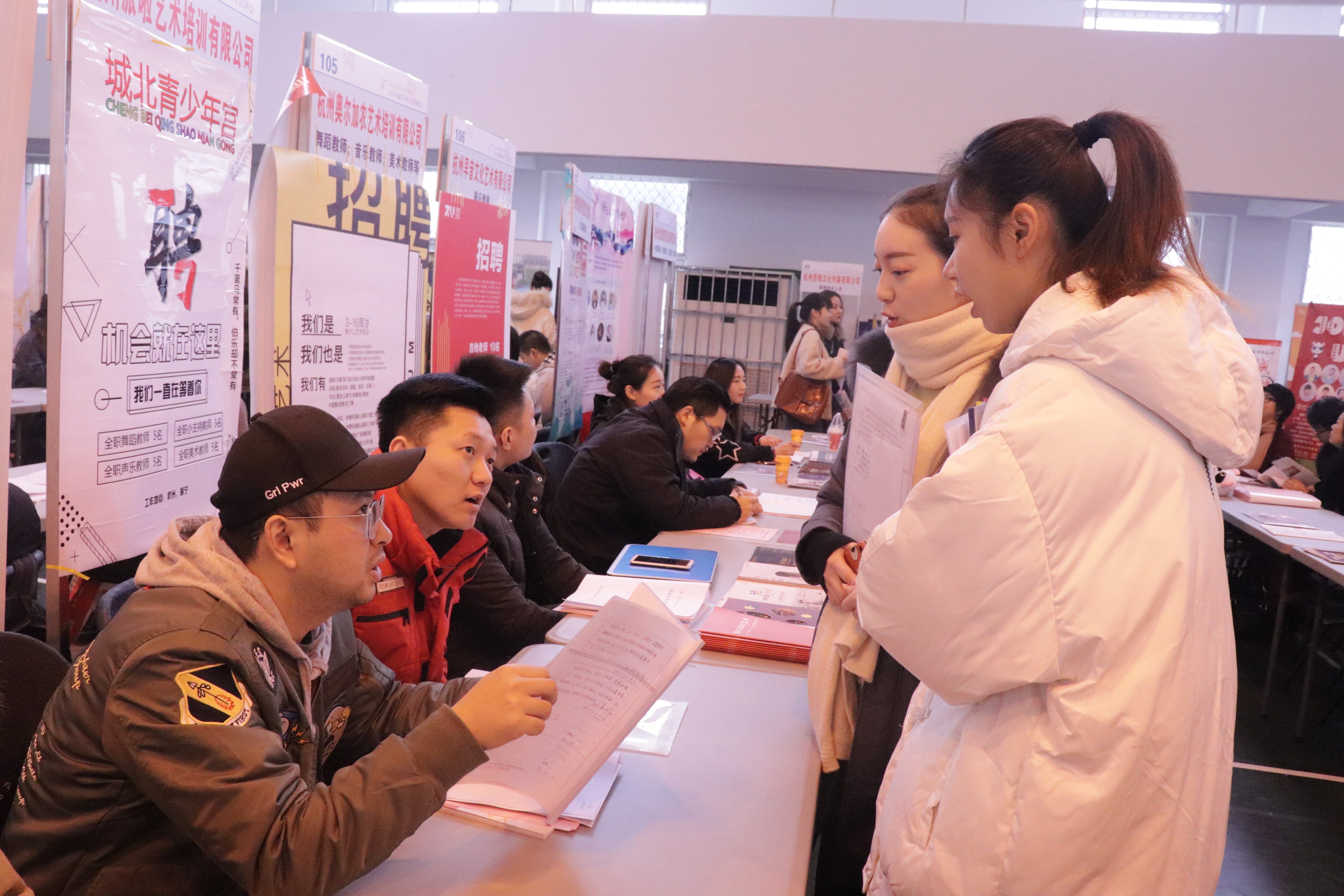 今年有将近500家用人单位报名参加招聘,既有国有企事业单位,也有时下市场需求旺盛的民营教育培训机构等来广纳英才。因场地原因,最终选取了200家招聘岗位综合度高、与专业匹配度高的单位现场招聘,其中有12家是校友代表所在单位回母校来招聘。浙江小百花越剧团、杭州大剧院、杭州歌剧舞剧院、杭州青少年活动中心、万事利集团、宋城集团等多家优秀企事业单位前来,堪称全省规模最大的艺术类毕业生专场招聘会。各教学单位也将会陆续举办点对点的小型招聘会。