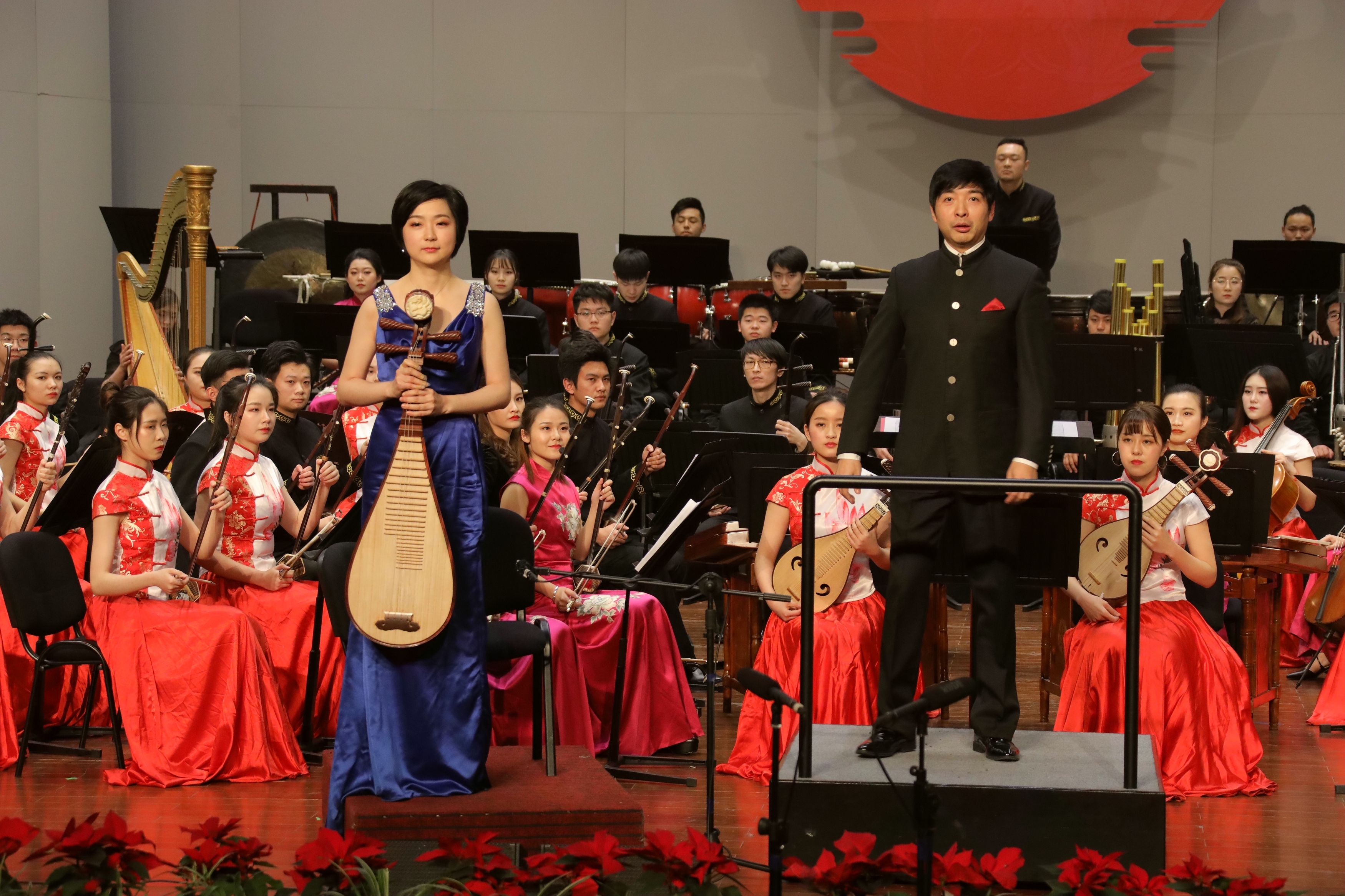 琵琶协奏曲《云想·花想》用唯美的女性化旋律及灵动雀跃的舞蹈性节奏,展现了娓娓道来的深切情思。担任琵琶独奏的青年教师张凌曾获2015年浙江省“新松计划”青年演奏员大赛一等奖等专业赛事佳绩,并于2018年10月成功举办了“新松计划”琵琶专场音乐会。