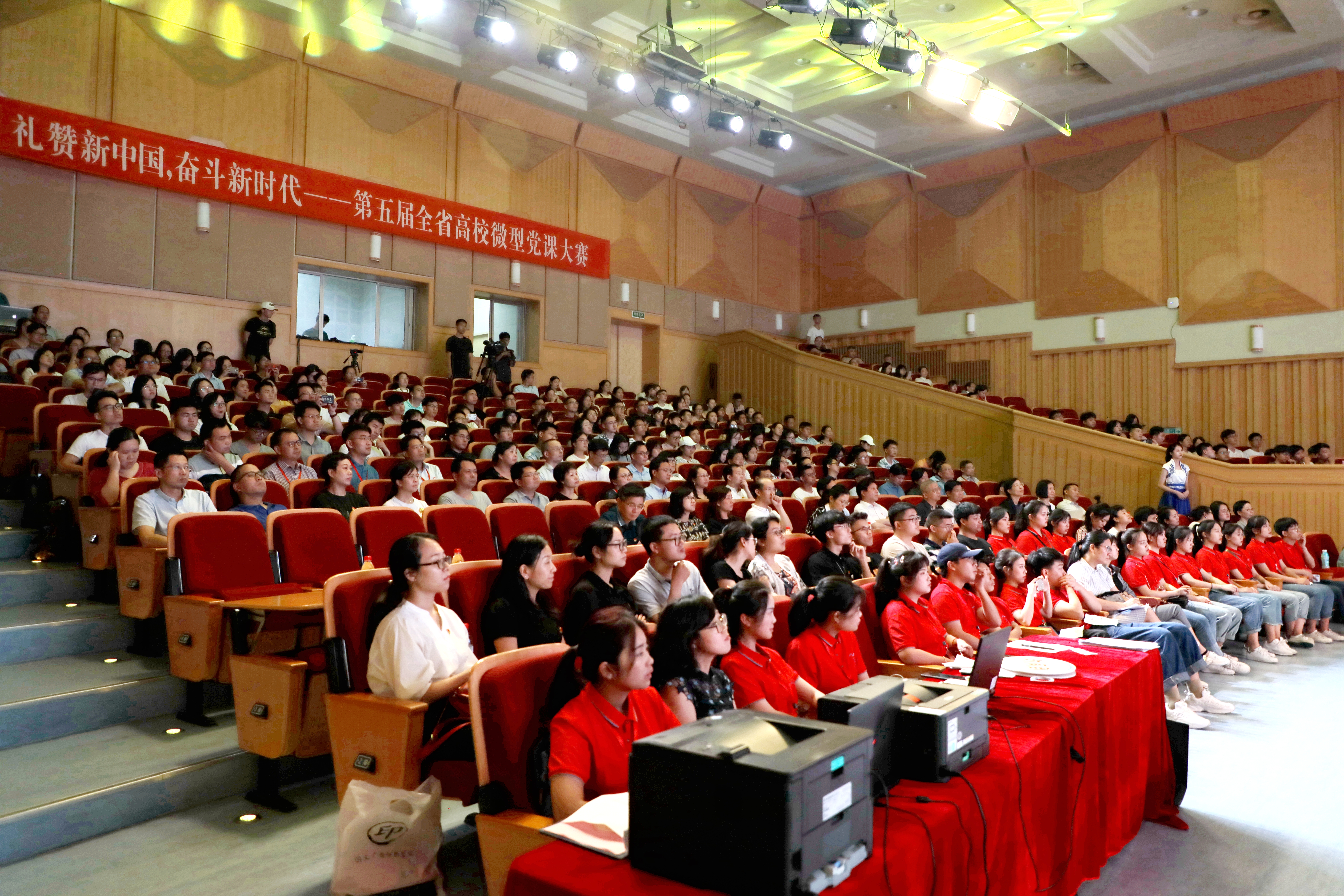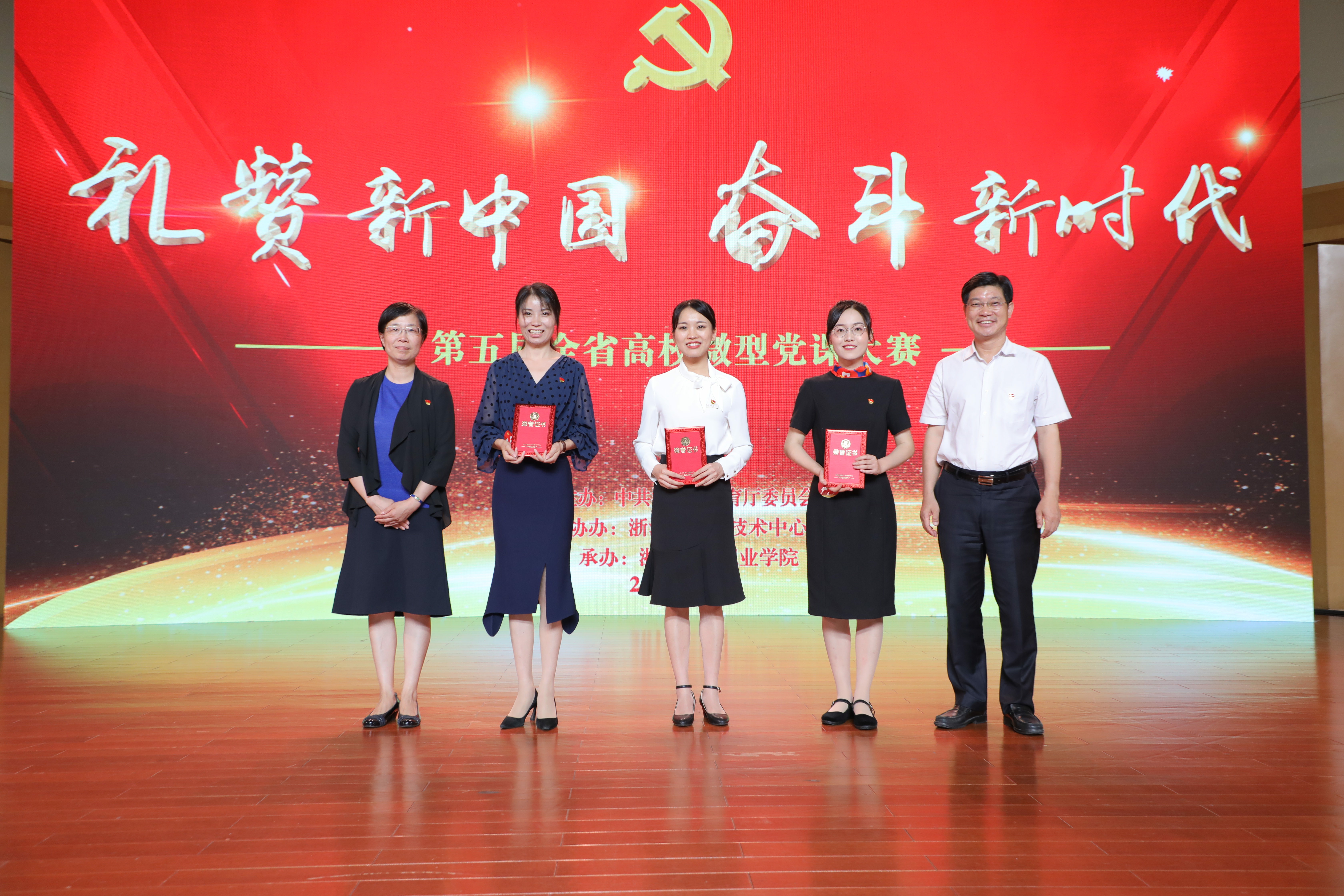 6月10日下午,以“礼赞新中国,奋斗新时代”为主题,第五届全省高校微型党课大赛决赛在浙江艺术职业学院举行。大赛由中共浙江省教育厅委员会主办,浙江省教育技术中心协办,浙江艺术职业学院承办。省教育厅党委副书记干武东、省教育厅党委委员、组织处处长应方彩,浙江艺术职业学院党委书记朱海闵等出席。来自全省高校党员师生代表近400人现场观看了比赛。