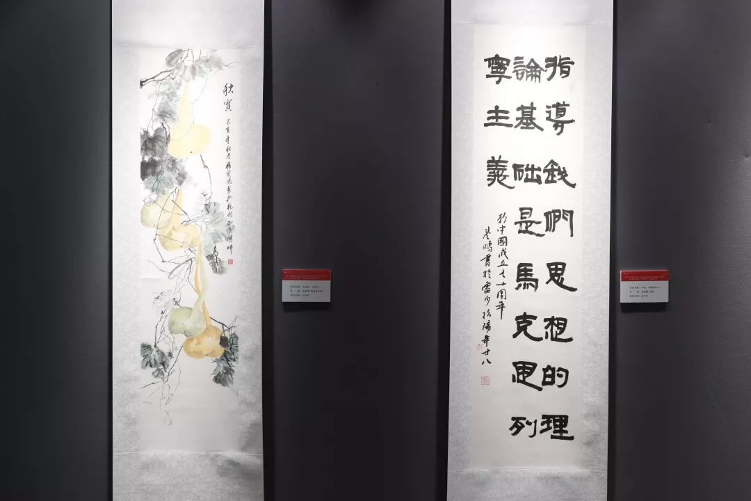 本次书画展由校党委宣传部、民间文艺研究中心、党委学工部、校工会主办,美术系、影视技术系、校书画协会等协办,自6月份征集启动以来,收到了退休老同志、校友、在校师生以及特邀书画名家的书画、摄影作品百余幅。所有作品还将在官微、校报等校园媒体展出,还将编印成册。这些作品的作者们,大到88岁老人,小到刚入小音乐班学习的十几岁孩子,他们用各自的方式表达了对祖国的热爱和对新时代的感怀。
