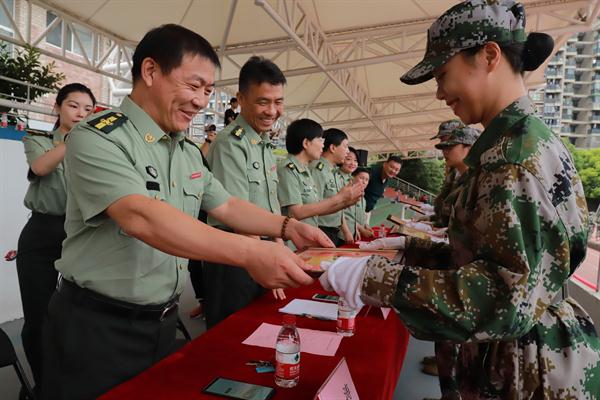 支涛作讲话。她代表学校向中国人民解放军某部队的全体教官表示了衷心感谢,向参训的全体同学表示慰问。她希望同学们在大学生活中,把个人梦融入中国梦,实现人生价值。在学习生活中能够秉承“求真 尚美 精艺 修为”的校训,勤奋学习,锐意进取,踏实做人,做一名德智体美劳全面发展的浙艺人。