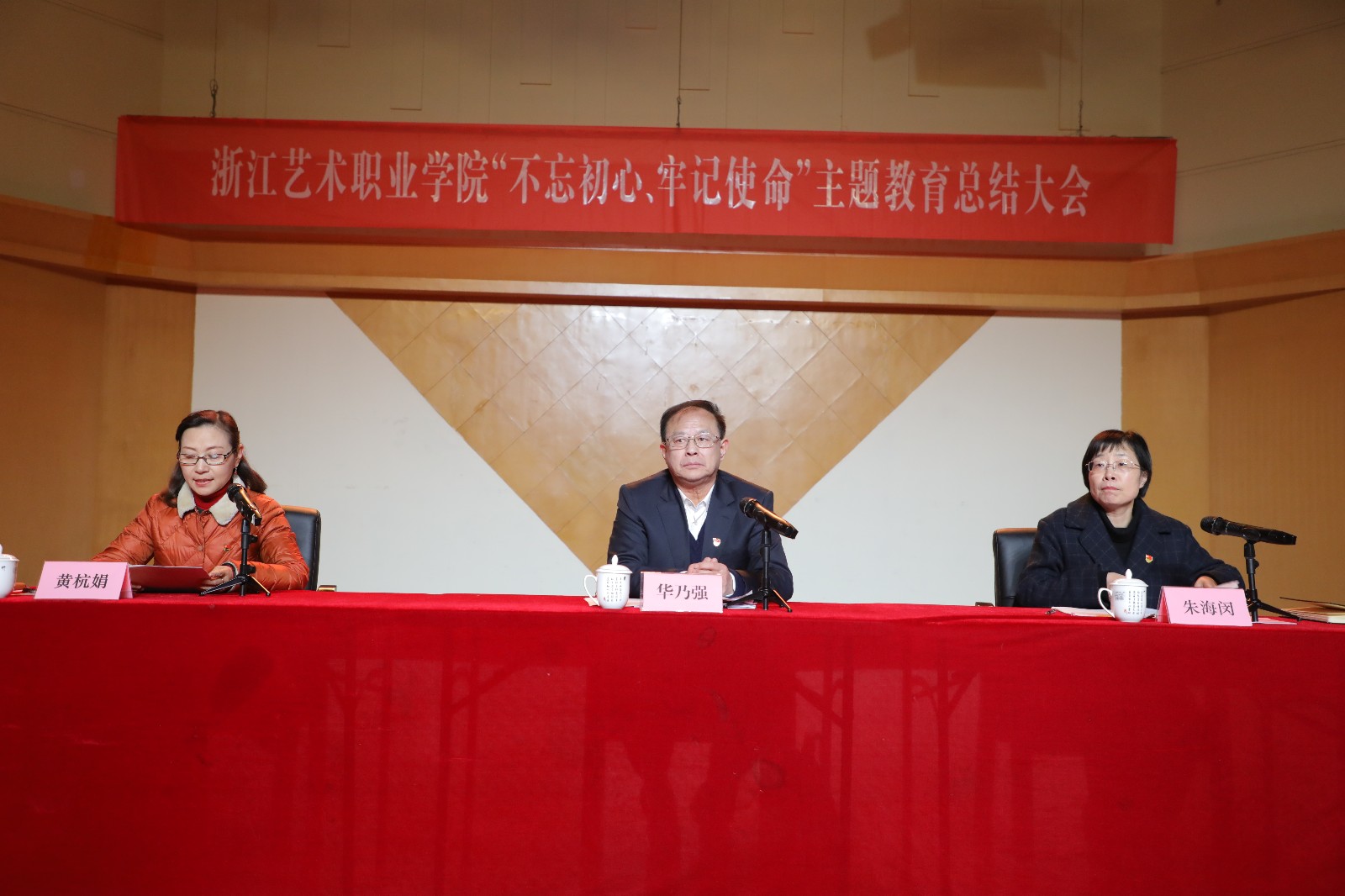 1月10日下午,浙江艺术职业学院“不忘初心、牢记使命”主题教育总结大会在音乐厅召开。会议深入学习贯彻中央和省委“不忘初心、牢记使命”主题教育总结大会重要精神,认真总结浙江艺术职业学院开展主题教育的经验与成效,对下一步巩固和拓展学校主题教育成果,持续推动“不忘初心、牢记使命”主题教育形成制度化、常态化作了部署。省委第十四巡回指导组组长、省公安厅原党委专职副书记、巡视员华乃强作指导讲话,校党委书记朱海闵作总结发言。大会由党委副书记、院长黄杭娟主持。