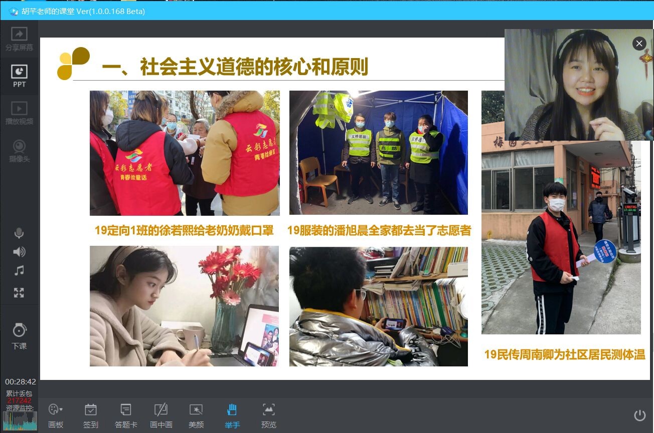 疫情打乱了正常教学计划,但浙江艺术职业学院的线上教学有条不紊地进行着。刚刚精彩的一幕就是胡芊的一堂网络公开课。在这场没有硝烟的战争中,胡芊和社科部所有思政教师一起迎难而上、因势而新,变身网络“主播”,担任战“疫”宣讲员,将“疫情危机”转化为了“教育契机”。