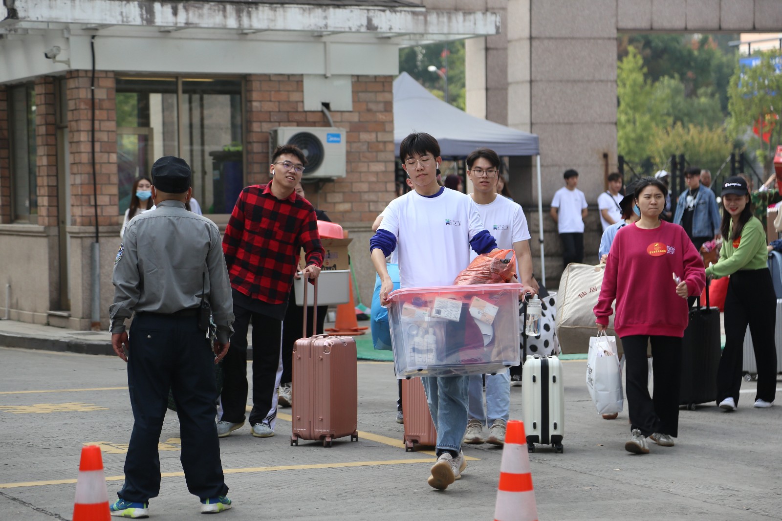 各院系领导、专业教师、班主任、辅导员、后勤员工和学生志愿者们一早就集结完毕,等候着新生们的到来。他们不辞辛劳第一时间与新生对接,为他们办理各项入学手续,从进校门到各院系报到地点,学校根据疫情防控要求做好了安全防范措施,工作人员帮助新生搬运行李,做好引导工作,维持现场秩序。