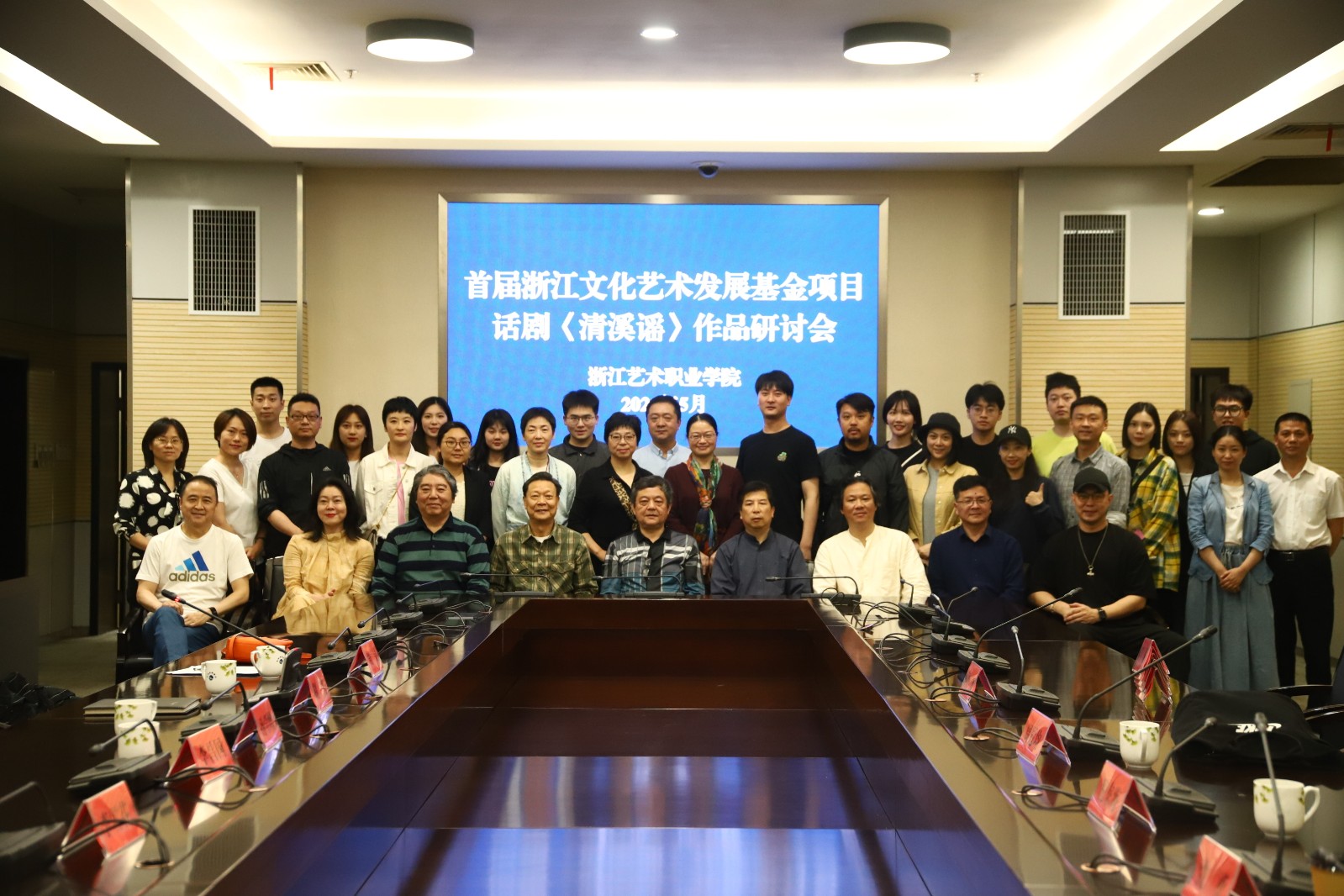 5月22日上午,《清溪谣》研讨会在长兴举行,与会专家纷纷赞扬演出效果超额完成了学校的创作任务。中国田汉研究会会长周光为《清溪谣》首演成功点赞。他希望《清溪谣》能够发展得越来越好,未来走上更大更广的舞台,让更多人看到。浙江省文化和旅游厅首届专家委员会委员、浙江省戏剧家协会顾问周冠均,对《清溪谣》首演将革命主题与革命历史发生地完美融合的形式给予了高度评价。他说,首演活动策划、运作非常成功,不论是老师还是学生,对这场演出都注入了无尽热血。同时提出建议,如果增加剧中人物心理层次的表演,人物形象将会更加鲜明生动。沈勇、倪东海、王鲁杭、叶志良、朱为总等专家也纷纷肯定演出成功,并为后续修改提出了宝贵意见。共同主办《清溪谣》首演开幕式的长兴地方代表长兴县委宣传部副部长、县文联主席刘月琴,县融媒体中心党委委员、总编辑王晓伟,长兴文旅集团总经理魏燕等长兴相关单位领导出席了研讨会。