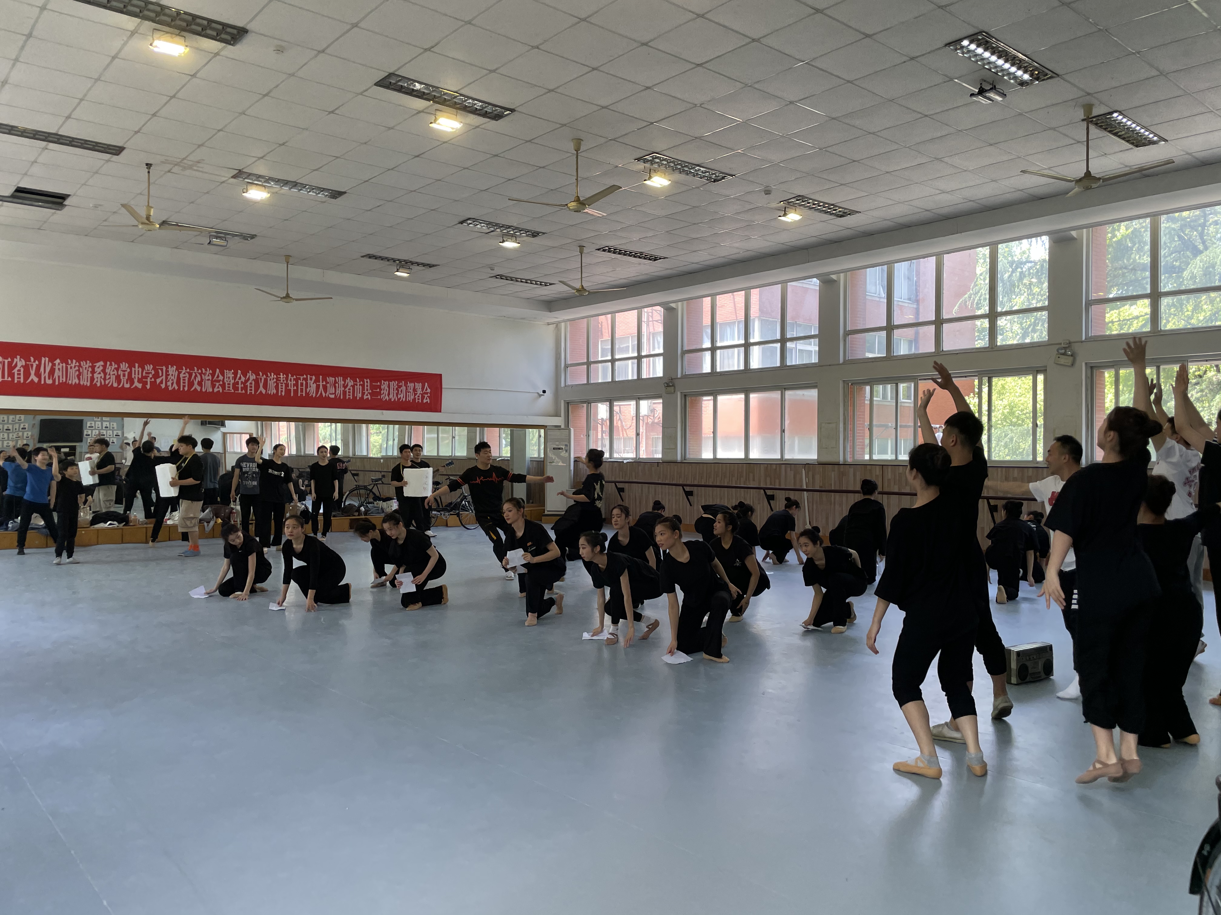 由中共浙江省委宣传部、浙江省文化和旅游厅、浙江广电集团主办的浙江省庆祝中国共产党成立100周年文艺演出《百年红船 扬帆远航》正在紧张的排练,我校戏剧系、音乐系、舞蹈系、教学实践部、总务处等部门参与其中。4月中旬开始,舞蹈系2019级编导班(少儿方向)、2019级编导班、2020级舞蹈表演班、2020级编导班(少儿方向)百余位学生参加《保卫黄河》《幸福现在时》《希望的田野》《幸福水》等大型舞蹈篇章的排练,他们把汗水洒在浙艺、浙江歌舞剧院、浙江音乐学院体育馆等排练场地,用实际行动献礼建党百年。