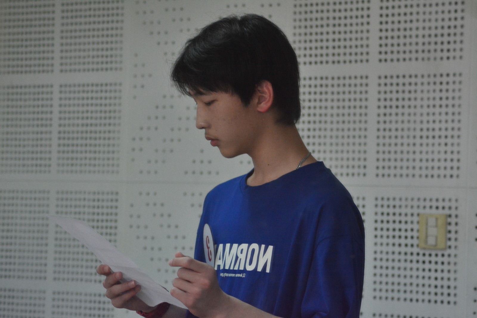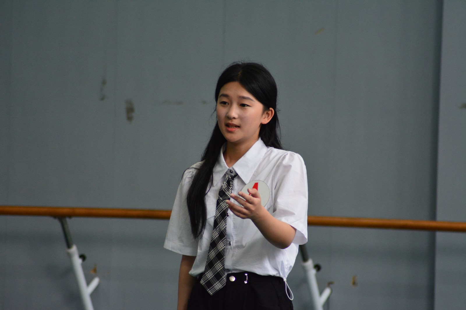 考试按地区分组进行。今年杭州、温州、台州等地竞争激烈,有的地区达到20选4。现场有人展示爵士舞、民族舞,有人唱美声、唱著名音乐剧选段,朗诵选题从经典现代诗,到寓言故事,跨度非常大。每位考生竭力展现自己最优秀的一面,展现自己苦练和勤学的成果。视听练耳考试,听音、识谱、单双音模唱是对选手音感和音准把握的测试,选手不仅需要模拟出老师钢琴的音高,还必须具备流利识谱的技能,这对同学们的技能素养做了更高的要求。