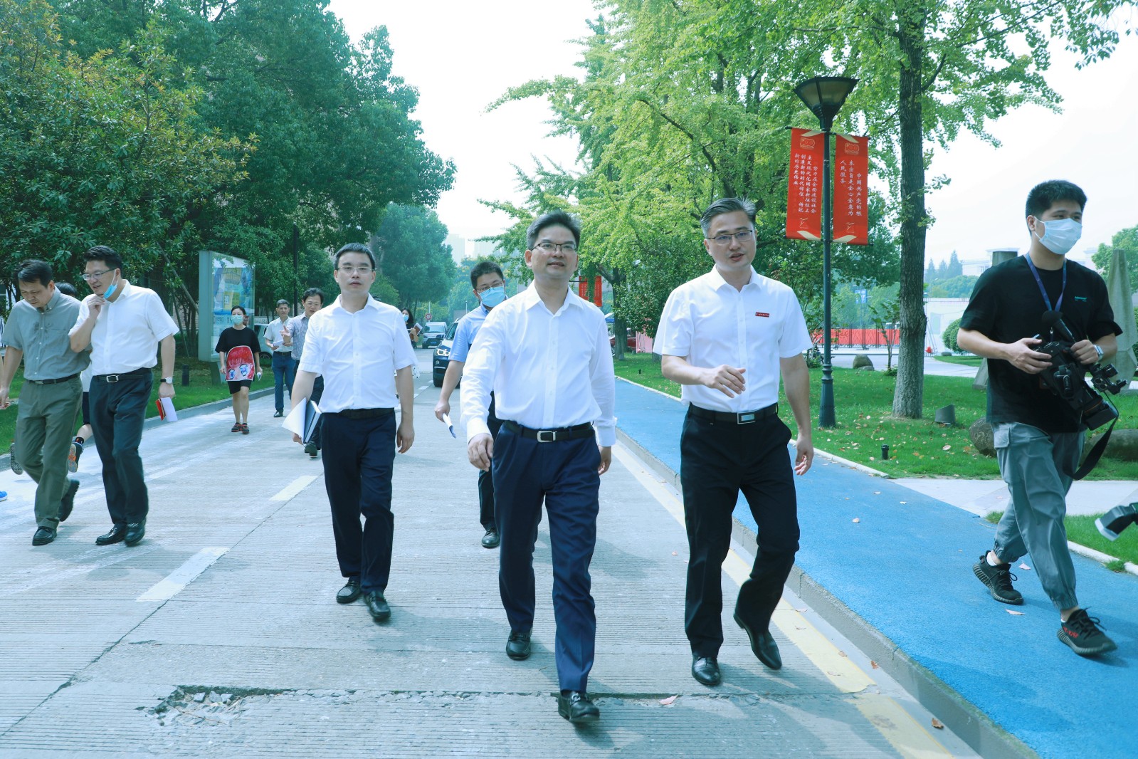 9月6日上午,开学第一天,也是第37个教师节来临之际,杭州高新区党工委、滨江区委副书记、高新区管委会主任、滨江区区长李志龙一行来我校进行教师节走访慰问,滨江区委常委、宣传部部长沈建,滨江区人民政府办公室、区民政局、区妇联、区教育局相关负责人陪同慰问。我校党委书记薛亮、党委副书记夏开堂、副院长沈军甫,以及相关部门负责人热情接待了滨江区领导一行。