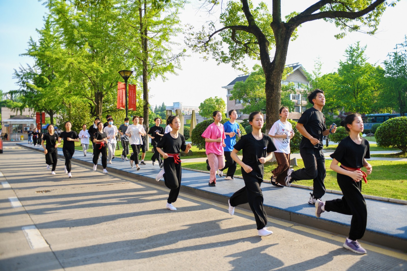 活动在杭州亚运会志愿者主题曲《等你来》中拉开序幕,校领导与同学们迎着晚风,在校园内“艺”起运动,“艺起运动”软件记录着他们的速度、里程等数据,一道道奔跑的身影,在绿树掩映的夕阳余晖里筑起了一道靓丽的“青春奔跑线”。