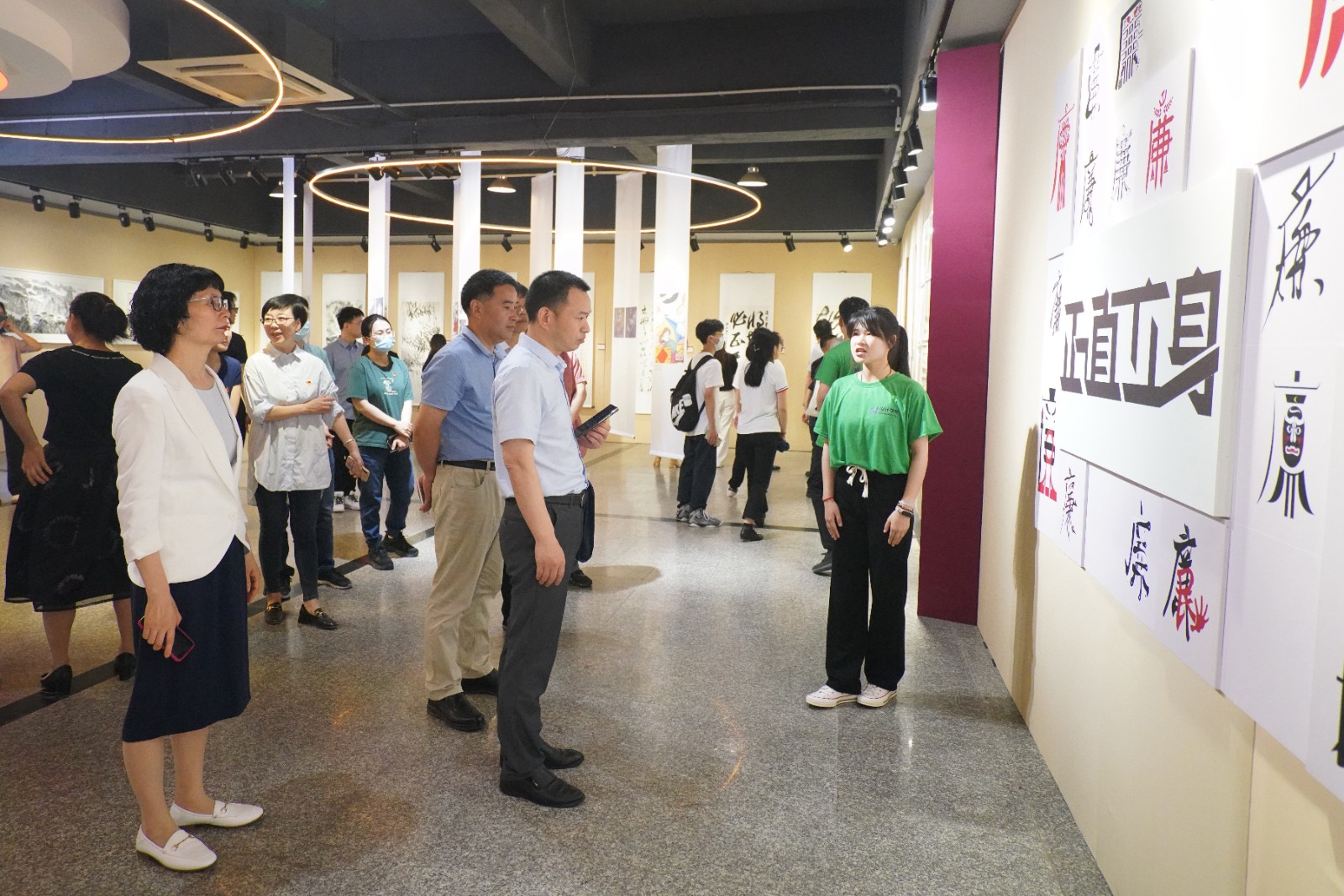 黄杭娟在致辞中表示,作为学校迎接党的二十大主题宣传教育系列活动之一,此次展览立足艺术特色,以多种作品形式呈现“守初心、知敬畏、扬正气、担使命”的廉洁主题,充分展示了学校紧紧围绕“立德树人”的根本任务,坚持营造风清气正的校园氛围,坚持培育师生敬廉崇洁、清正自律的价值观念。希望通过艺术的形式,引导广大党员、师生追求高尚的职业道德和个人情操,树立良好的校风学风,规范师德师风,营造涵养校园清廉文化,为持续提升清廉学校建设水平,推动学校“十四五”高质量发展和助力“双高”建设筑牢思想根基,做到德才并重。全校师生要将新时代廉洁文化内化于心、外化于行,牢固树立正确的世界观、价值观、事业观,明大德、守公德、严私德,以坚实的担当和优异成绩迎接党的二十大胜利召开。