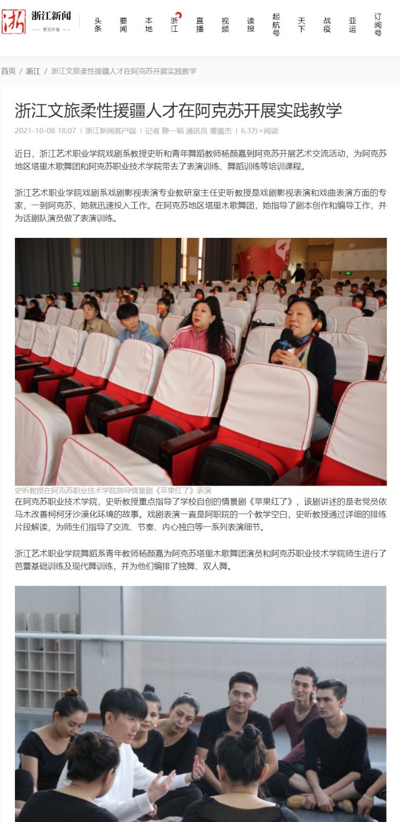 学校活动、人物报道、演出视频等在人民日报、新华社、央视新闻、光明日报、中国教育报、中国青年报、中国文化报、学习强国、浙江日报等国家级、省市级媒体平台发表百余篇,受到广泛好评。