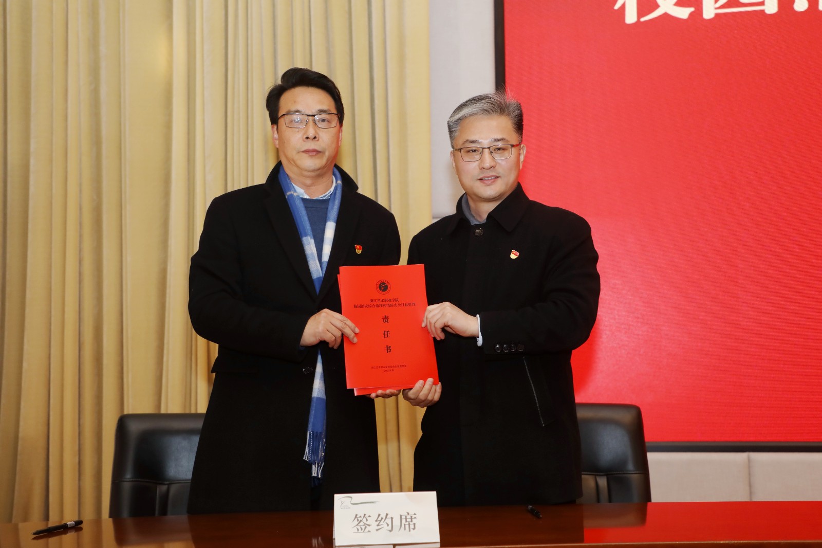 会上签订了2023年度学校党风廉政建设、意识形态工作、校园治安综合治理和消防安全目标管理三项重点工作责任书,与会人员还观看了师德师风警示教育片。