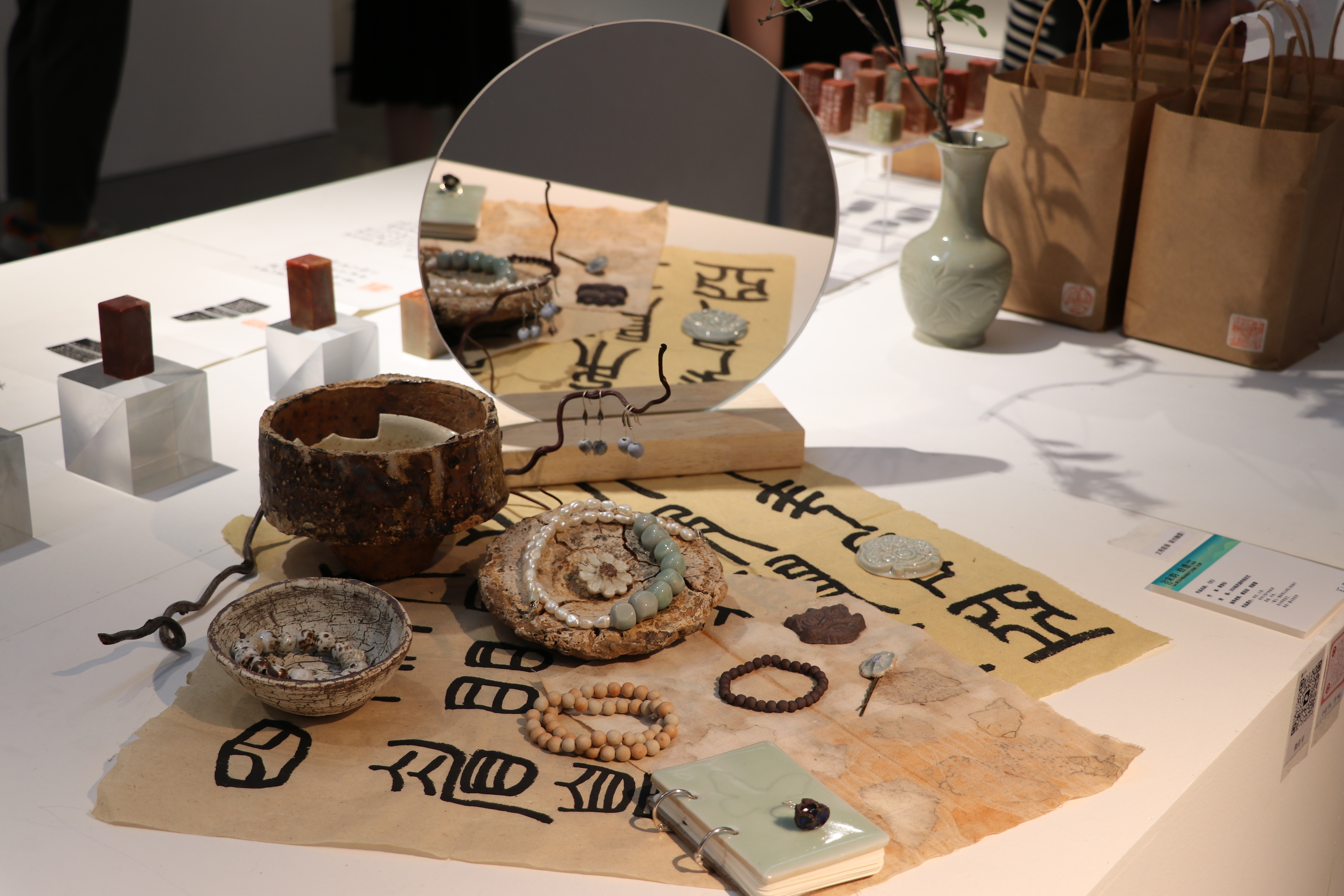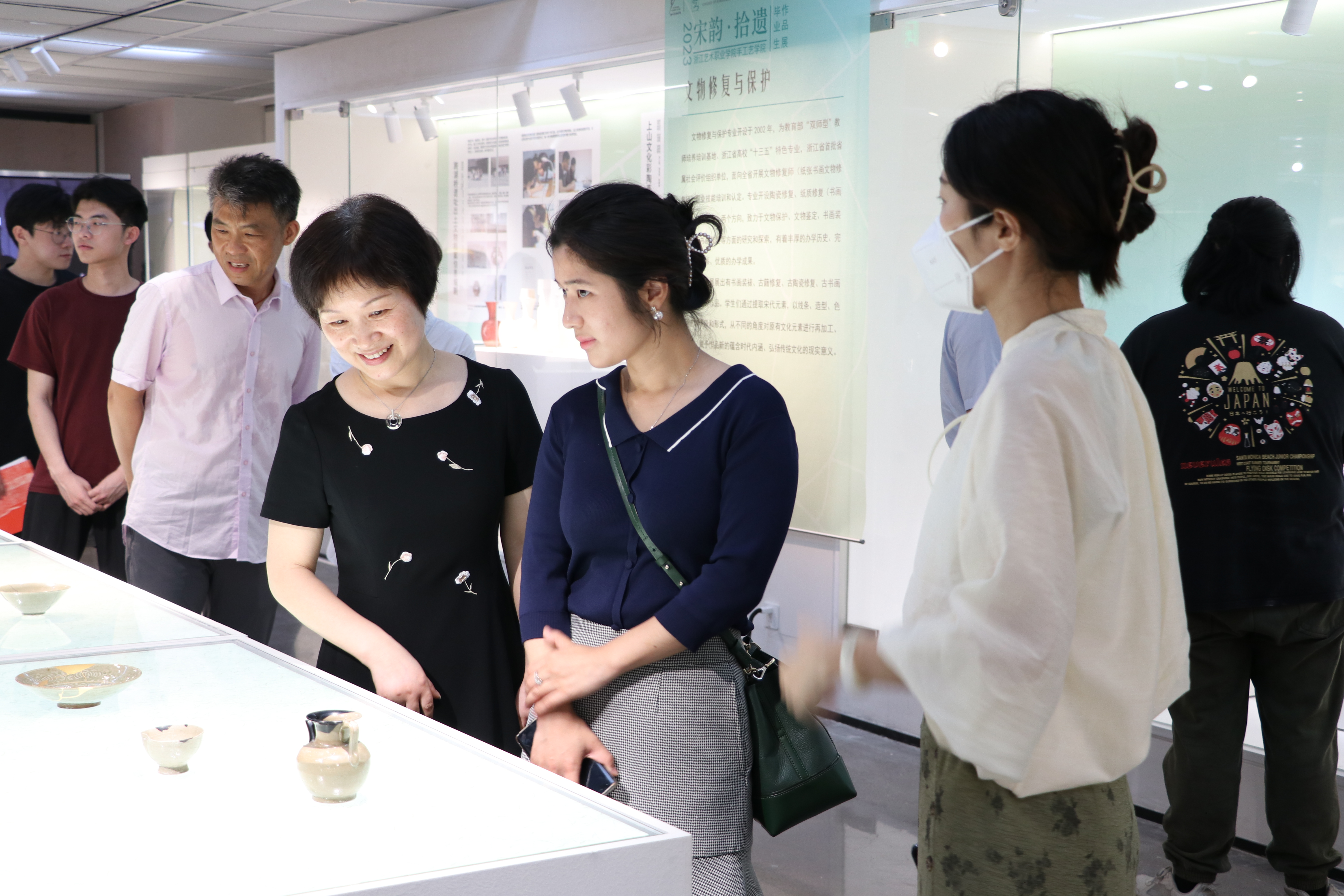 本届毕业生作品展以“宋韵•拾遗”为主题,共展出手工艺学院文物修复与保护、民族传统技艺、展示艺术设计、文化创意与策划四个专业166名同学的优秀艺术实践成果,涵盖了书画装裱、古籍修复、古陶瓷修复、古书画仿制、金工首饰、青瓷烧造、传统印染、水印木刻、石雕篆刻、刺绣工艺、博物插画、非遗文创产品设计等艺术形式的作品。毕业设计作品展既是同学们大学学习成果的结晶,也是大家人生之路的崭新起点。