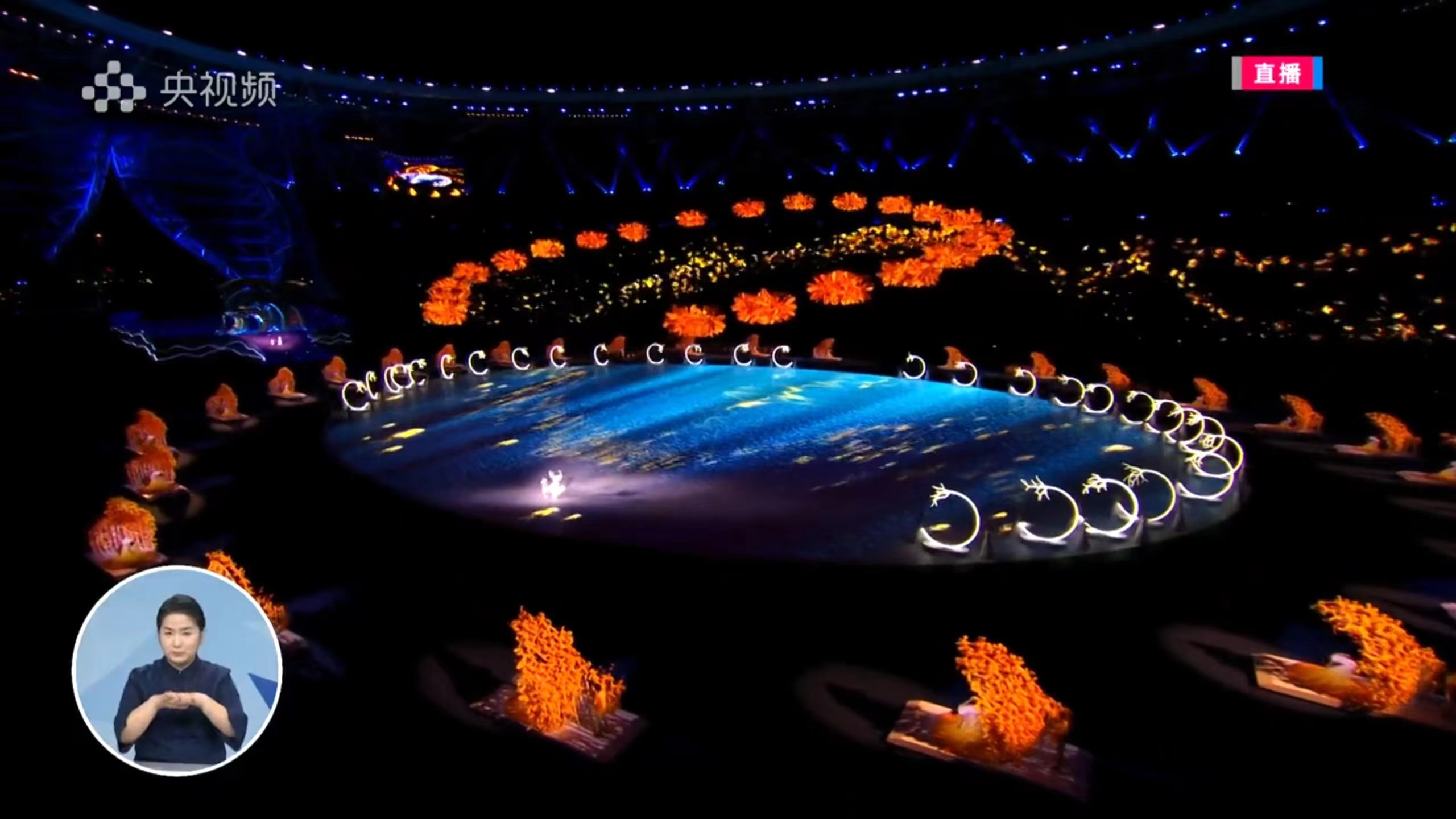 第三篇章《梦闪耀》中,浙艺386名学生扮演金桂少女挥舞着金色花环,17名学生进行手语表演,青春有活力。主题曲《我的深情为你守候》中,浙艺的386名金桂少女、25名月桂少女参演,17名学生进行手语表演,为表演注入情感,给人温暖与感动。