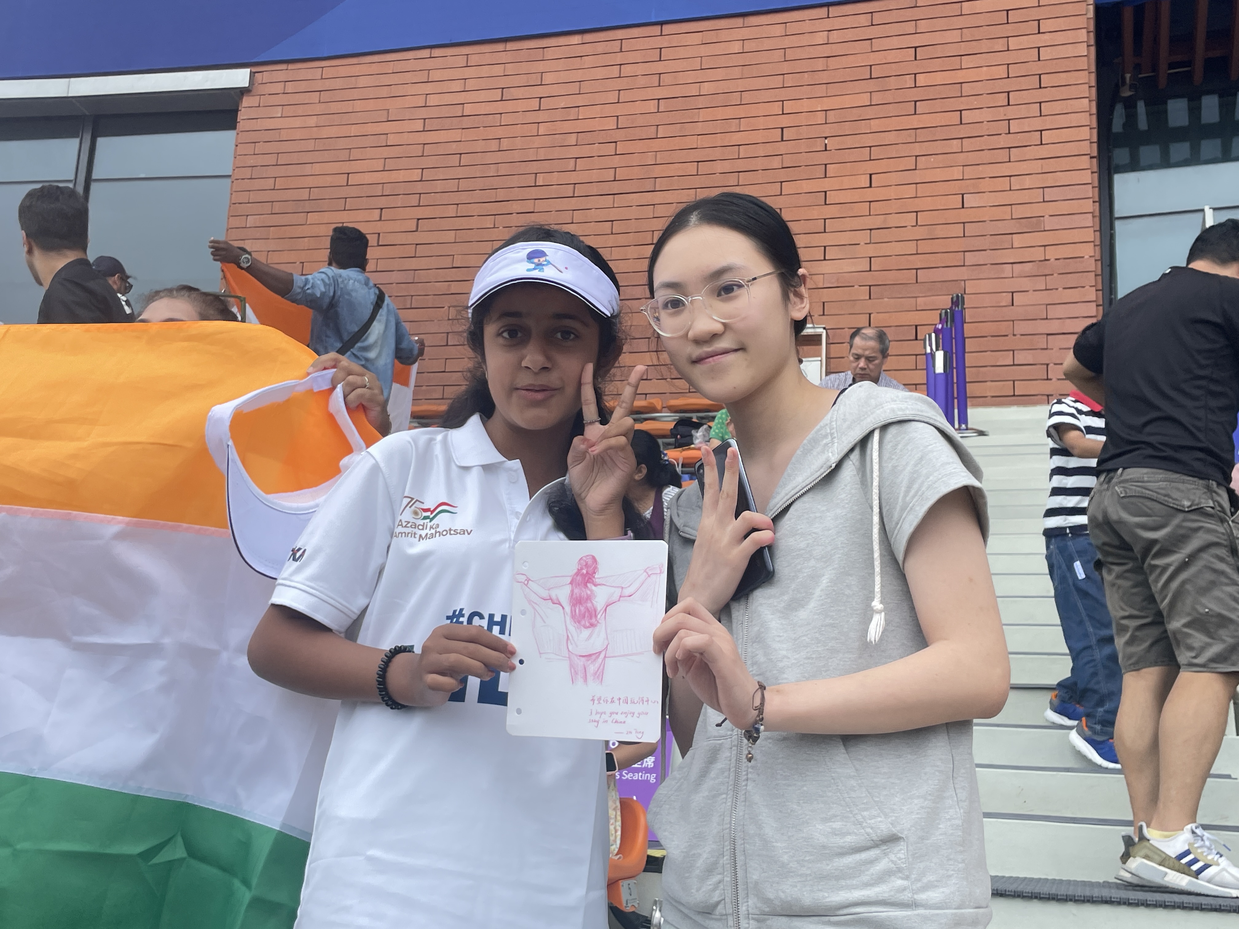 童赵楠的画作成为了一道美丽的风景线,为竞技比赛增添了一份独特的艺术气息和文化魅力。这些画作不仅仅是一份礼物,更是浙艺学生对外国友人的真挚祝福和友好情感的表达,增强了与外国友人之间的文化交流和热情好客。