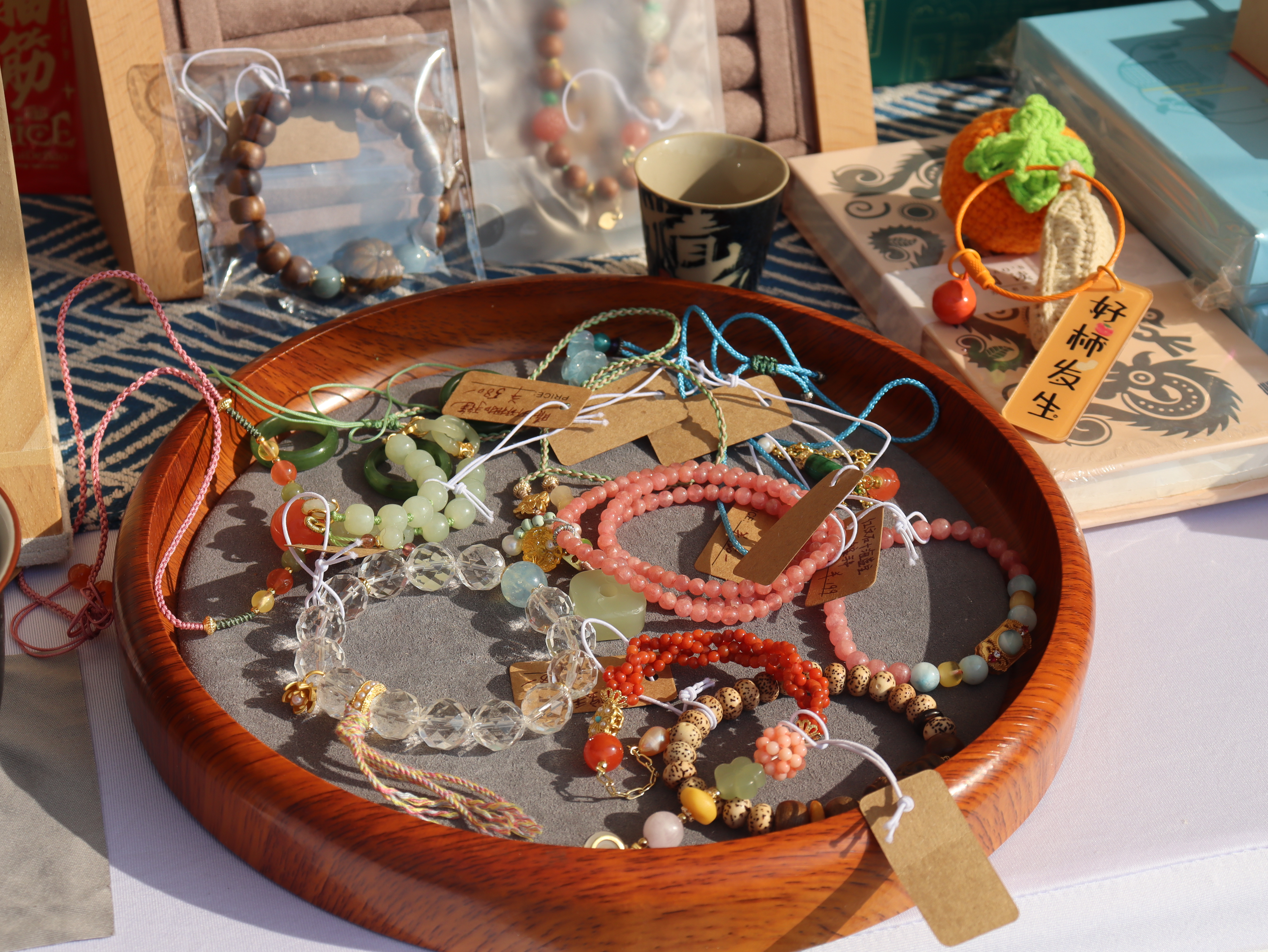 参加此次市集活动的师生结合课堂教学,精心打磨设计作品,将一件件充满艺术创造力和生命力的手工艺教学成果展示出来,让非遗传统技艺在文创产品中焕发新的生机。