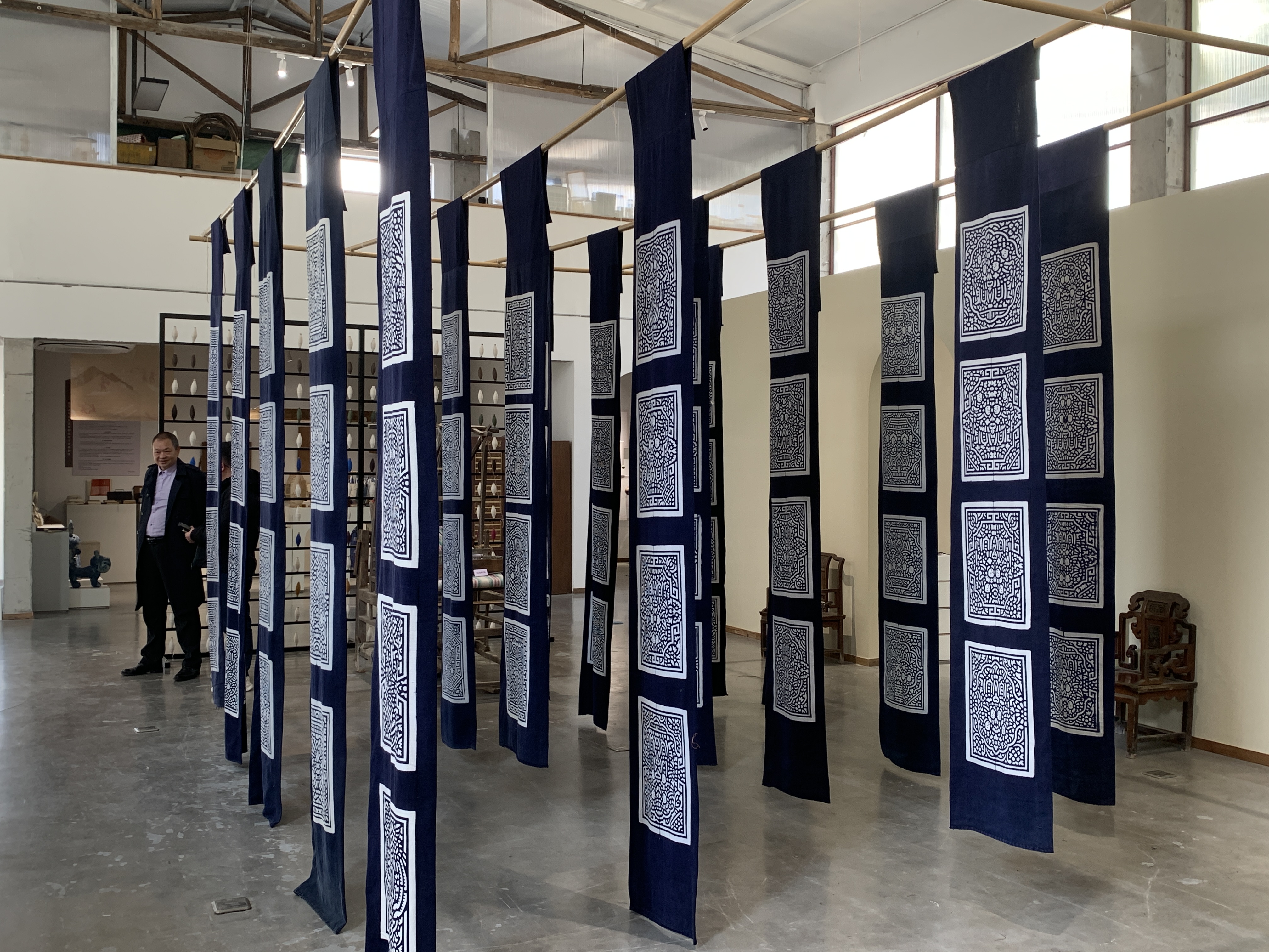 ▲“出于⻘蓝”——中国⾮物质⽂化遗产传承⼈群研培计划培训班(⼿⼯印染技艺)结业展