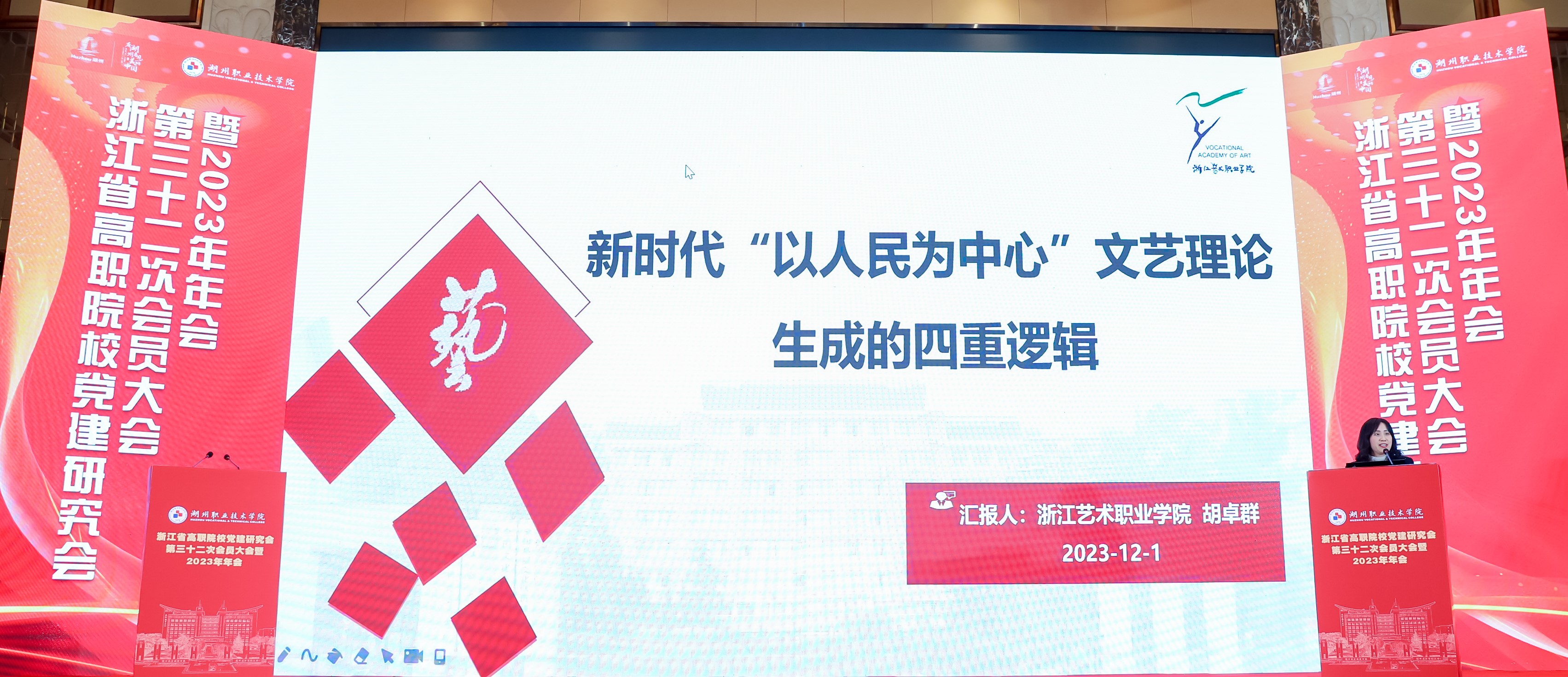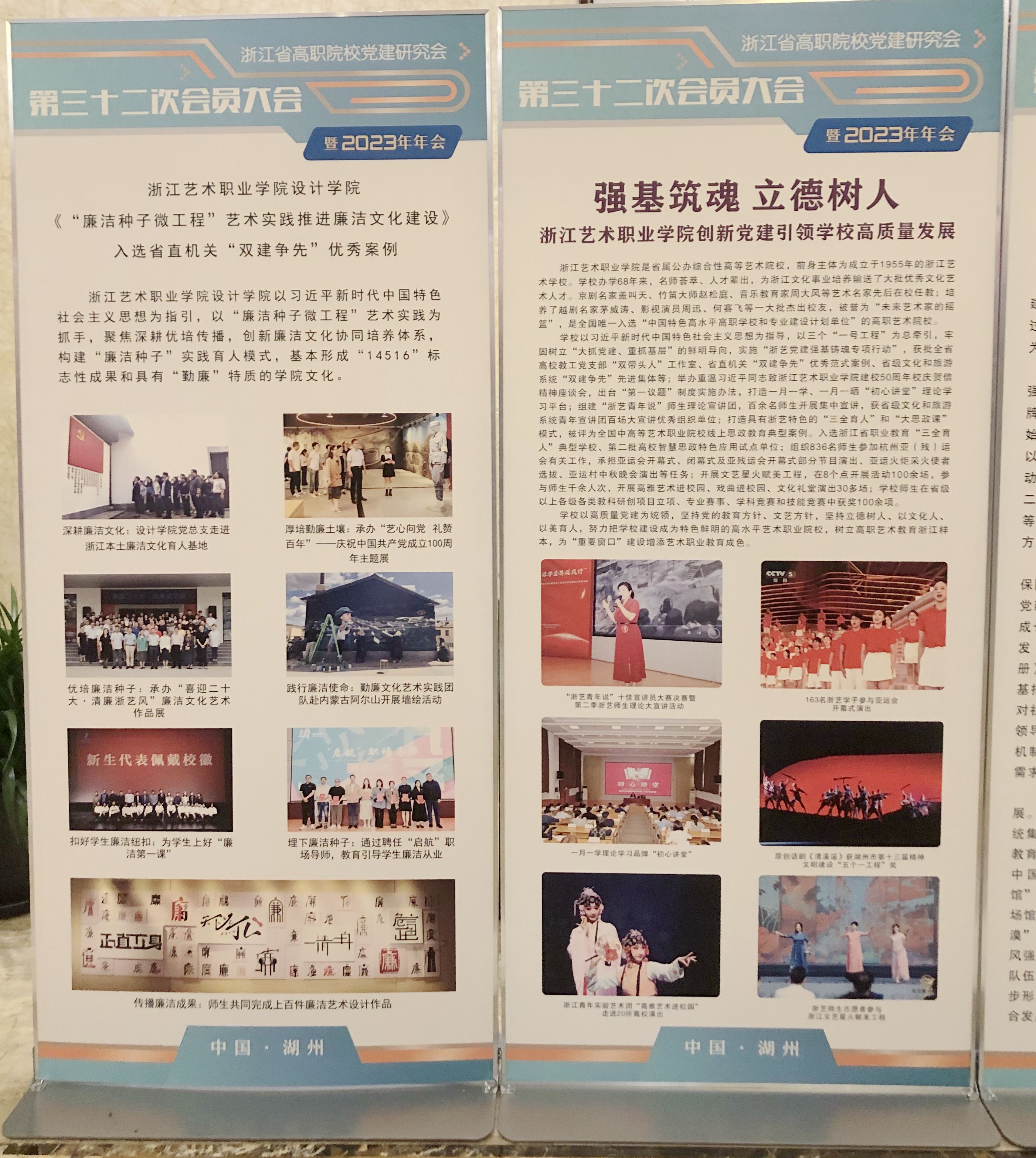会议期间,围绕高职院校党建工作和高职教育高质量发展举办了多场主题发言。大会以展板形式展示了各校优秀党建案例,我校《强基铸魂 立德树人 浙江艺术职业学院创新党建引领学校高质量发展》《“廉洁种子微工程”艺术实践推进廉洁文化建设》入选。