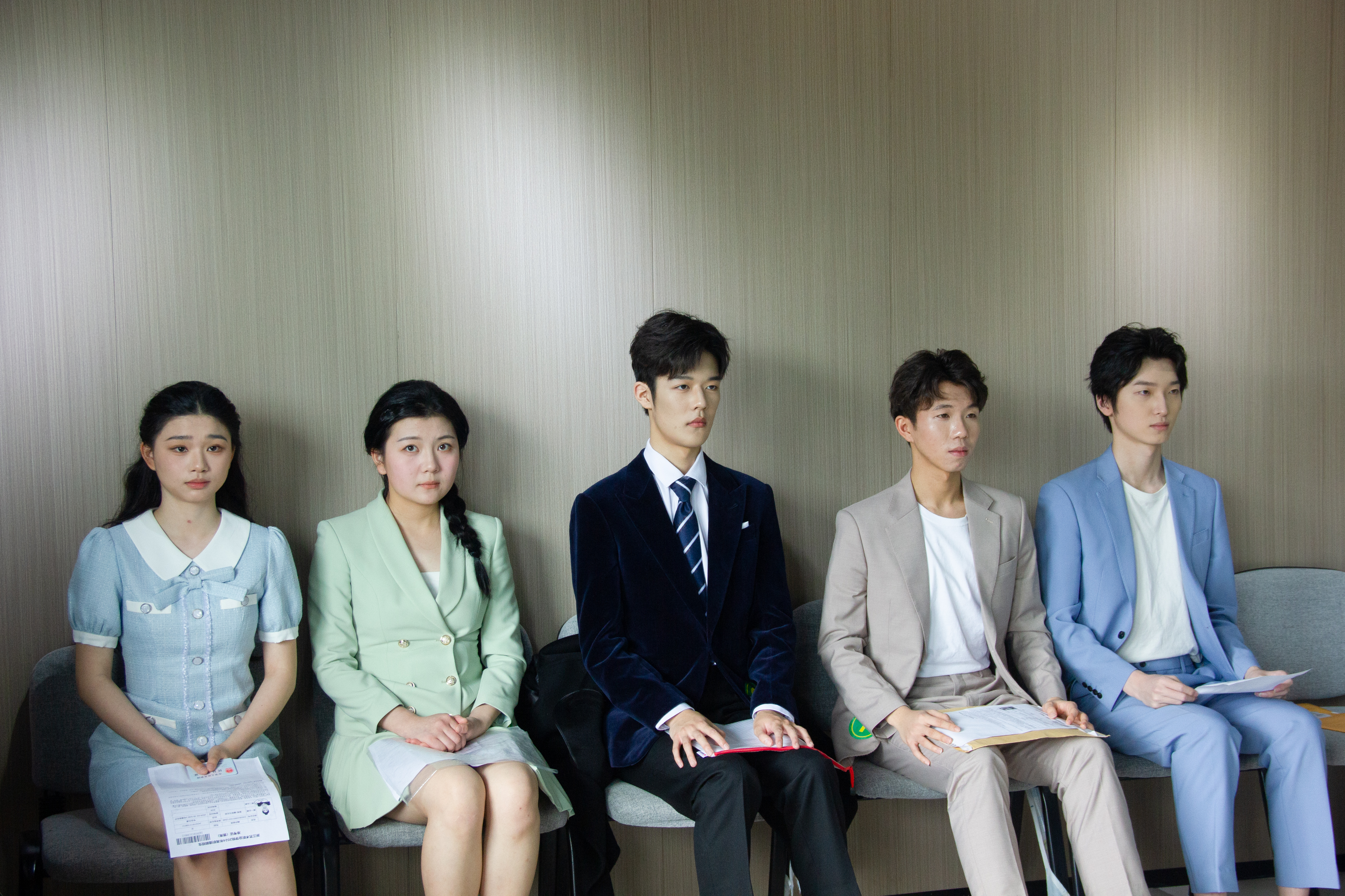 考生们在候考室认真准备