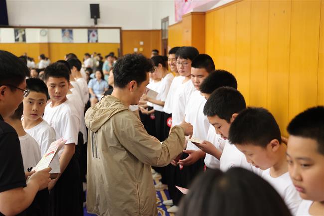 活动最后,行业嘉宾、校团领导共同为京剧班的同学们送上书记校长有约纪念卡。