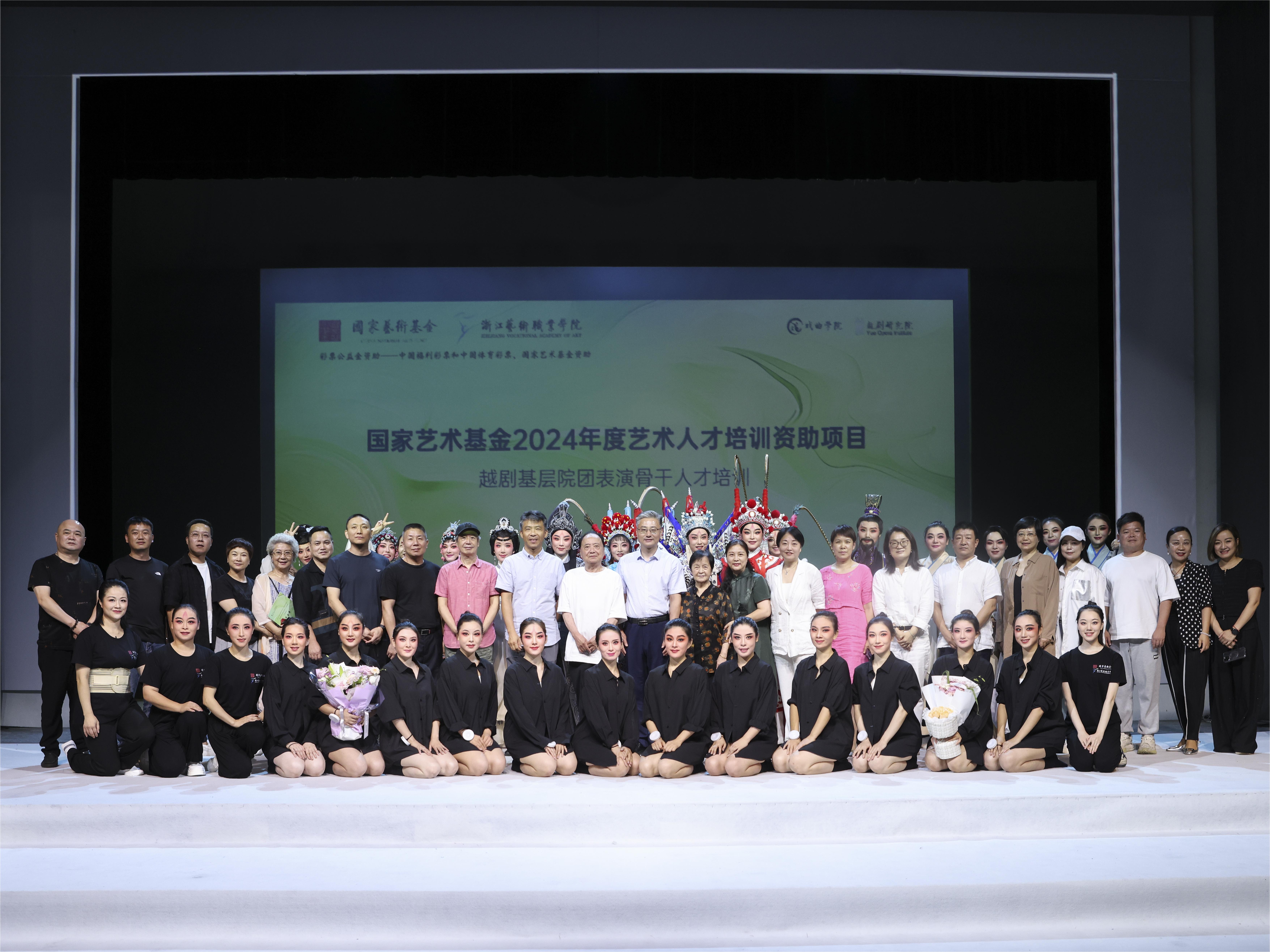 该项目艺术指导杨小青、汪世瑜等一路为学员保驾护航,现场观看了学员近两个月培训成果展示。浙江艺术职业学院党委书记薛亮、纪委书记沈军甫,党委委员、副校长刘杨,党委委员、宣传部部长、统战部部长傅文钢出席,参与此次培训的学员所在院团领导、以及授课教师代表等观看汇报演出。