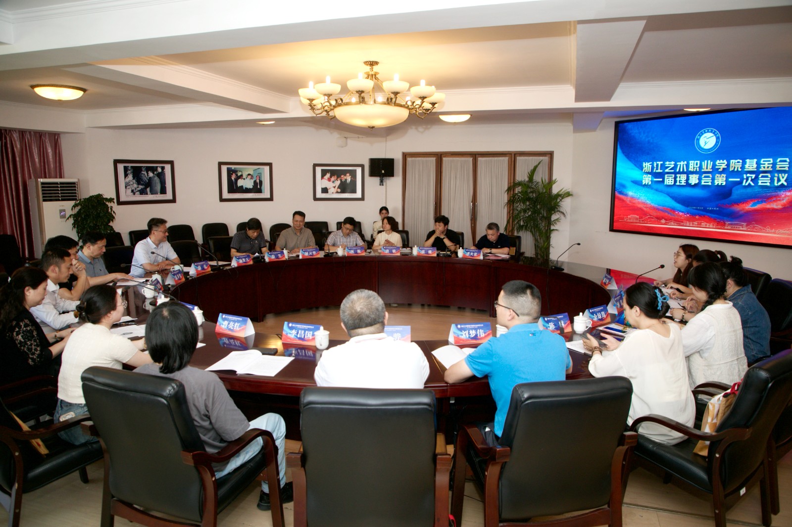 7月3日,浙江艺术职业学院教育发展基金会第一届理事会第一次会议召开。学校党委书记薛亮,校长、党委副书记施俊天,党委副书记夏开堂出席会议,会议由党委委员、副校长徐芳主持。