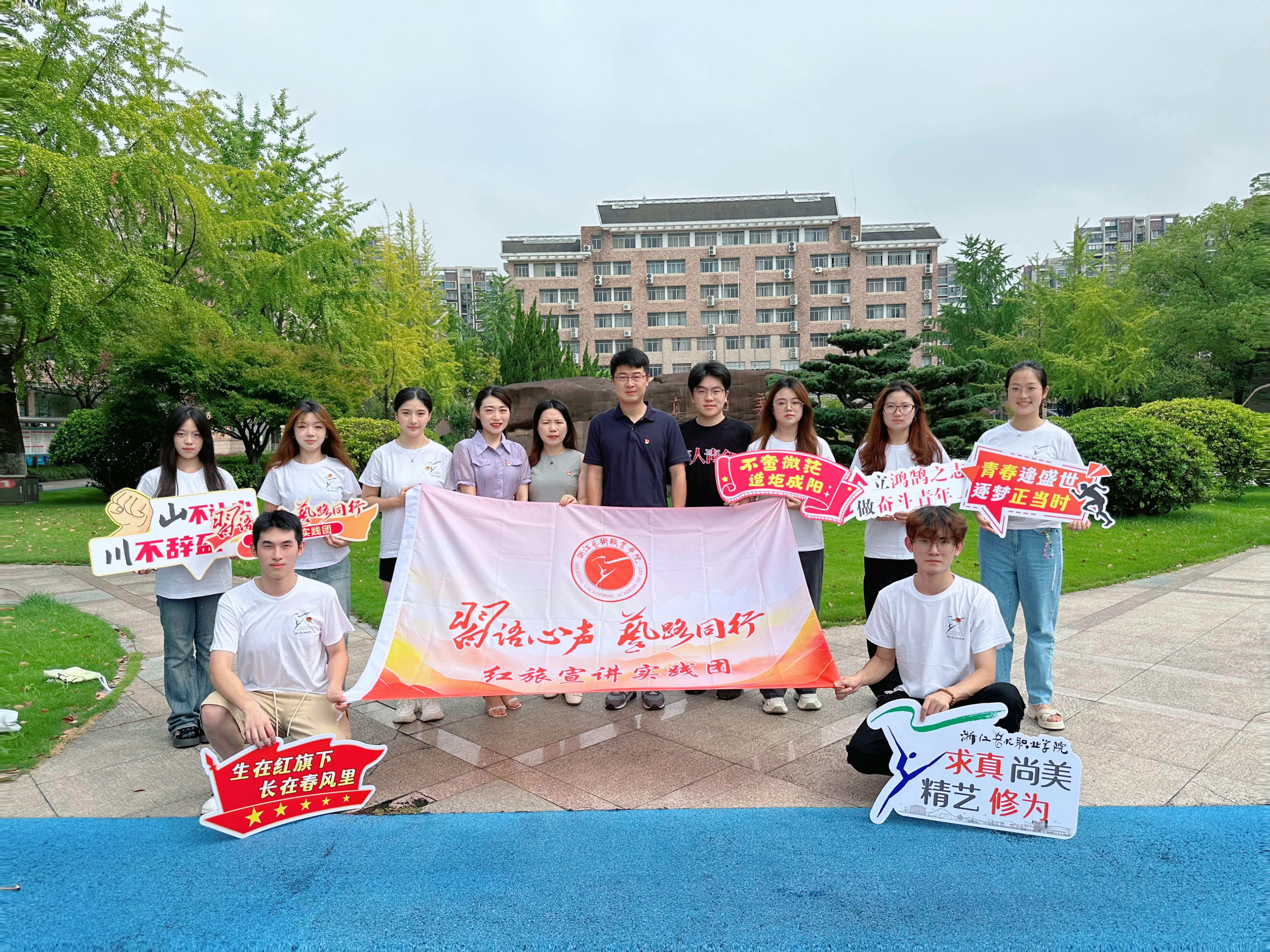 8月14日-16日,浙江艺术职业学院“‘习’语心声, ‘艺’路同行”红旅宣讲实践团十余人走进台州仙居横溪镇,面向基层群众开展习近平新时代中国特色社会主义思想宣讲等一系列志愿实践活动。